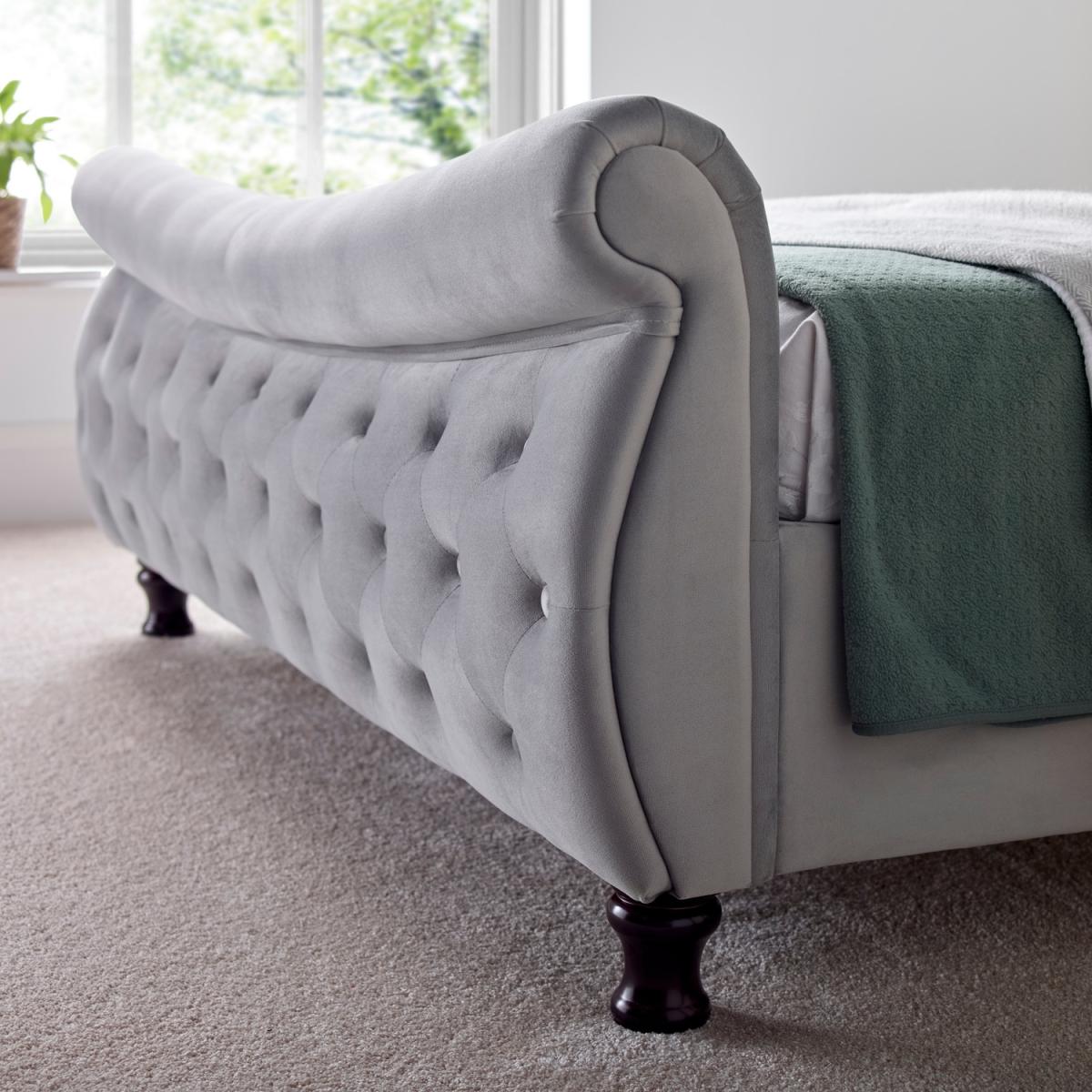 Oxford Grey Velvet Chesterfield Sleigh Bed - Grey / King