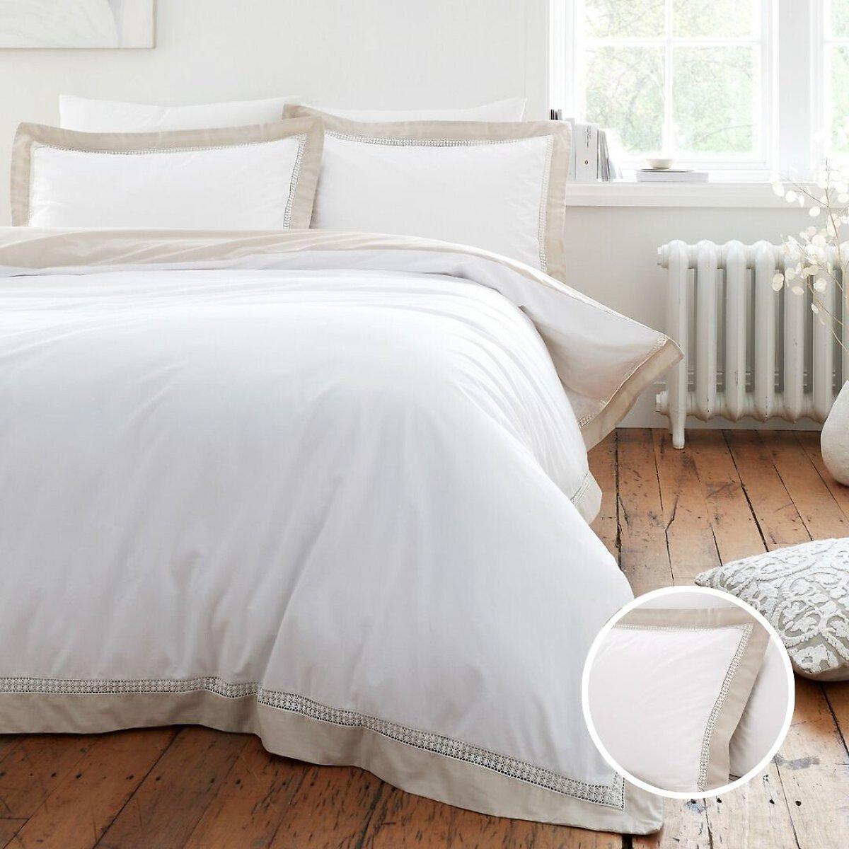 Where timeless charm meets contemporary allure, this bedlinen set exudes understated sophistication. The soft base is accentuated by oxford style pillowcases adorned with an inset floral lace trim, adding a delicate touch of grace to your bedroom. Crafted with care from soft and comfortable pure cotton, in luxury 200 thread count, to enhance your sleep experience. Bianca evokes a sense of well being and relaxation perfect for creating a calming retreat with timeless styling for the modern home. Made to quality and human-ecological safety standards, in accordance with MADE IN GREEN by OEKO-TEX®.100% Cotton. Sizes available: -135x200cm (Single)-200x200cm (Double)-220x230cm (King)-220x260cm (Super King)This product will be dispatched by one of our trusted suppliers. You’ll be contacted by their selected courier about your delivery. TURNE01