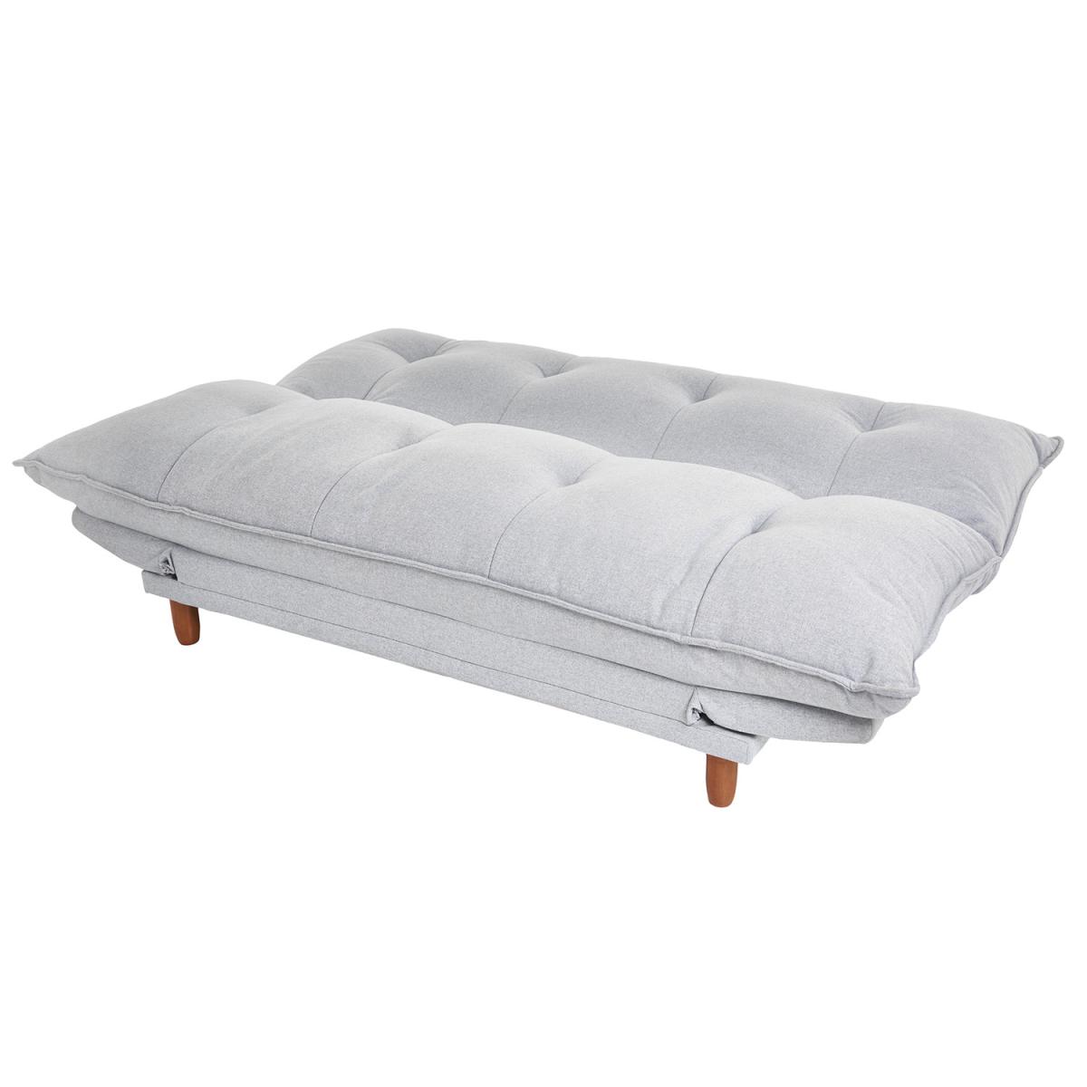 Create a stylish multifunctional living space with this Oxford Linen Luxury Sofa Bed. Inspired by the minimalism of Scandi style, this generously-cushioned click-clack sofa bed stands on natural wooden legs and is upholstered in grey linen with simple button detailing. Featuring curved ends that act as arms and fold down when the bed is in use, this comfy settee is perfect as an extra sleeping space for guests or for studio flats and homes tight on space.
