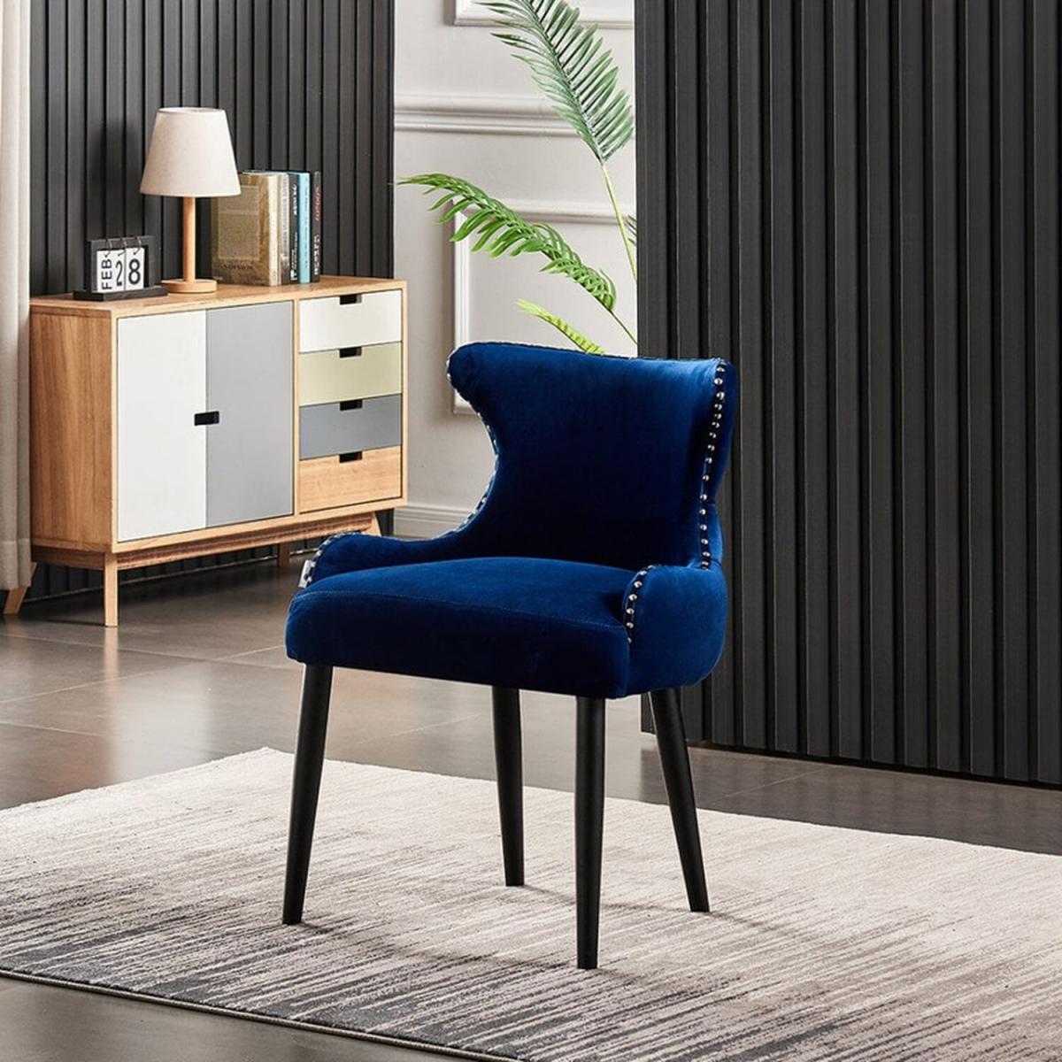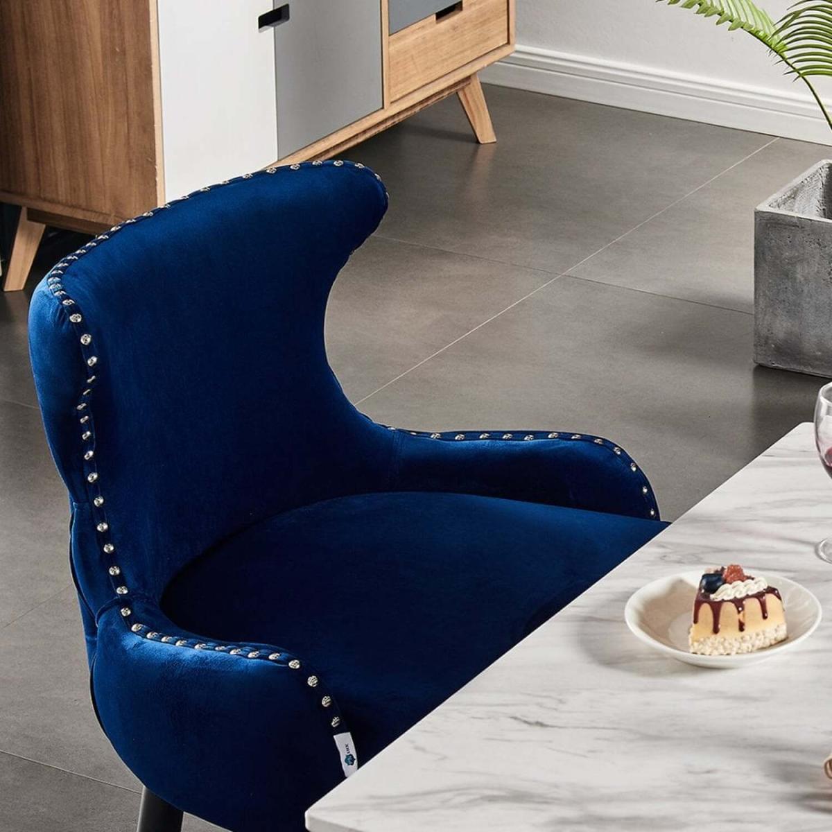 Introducing the Oxford Velvet chair featuring a padded seat quilted back, finished with amazing stud work and piping nestled on top of hard-wearing rubber wood legs, these design-led chairs will definitely be the life of the party if not steal the show! The beautifully smooth velvet finish to this chair is also complimented with detailed buttons which boast the pure beauty of the chair. The stylish dining chairs are incredibly practical for everyday use and will give a sophisticated touch to your furniture. Ideal to use in the kitchen, dining room, living room, bedroom, balcony, receptions, waiting rooms as dining room chair, kitchen chair, bedroom chair, relaxing chairs, office chair, living room chair or a desk chair. Upholstered in plush velvet and a high-quality density foam and fiber seat ensuring comfort levels are premium. A gentle curve to the back of the chair can fit your spine or back and provide you unparalleled comfort with each use ensuring you never want to use another chair again! Evoking a modern contemporary aesthetic.