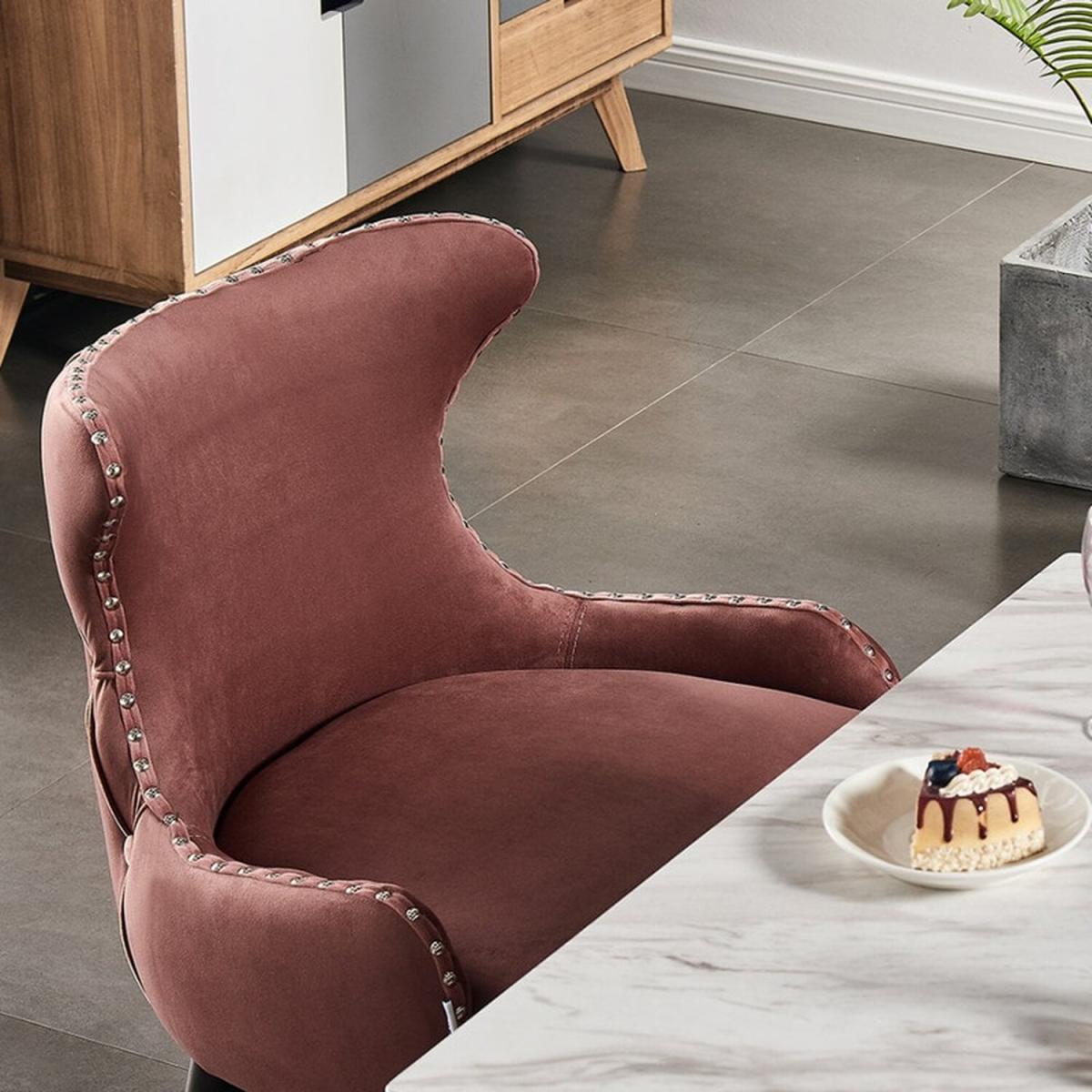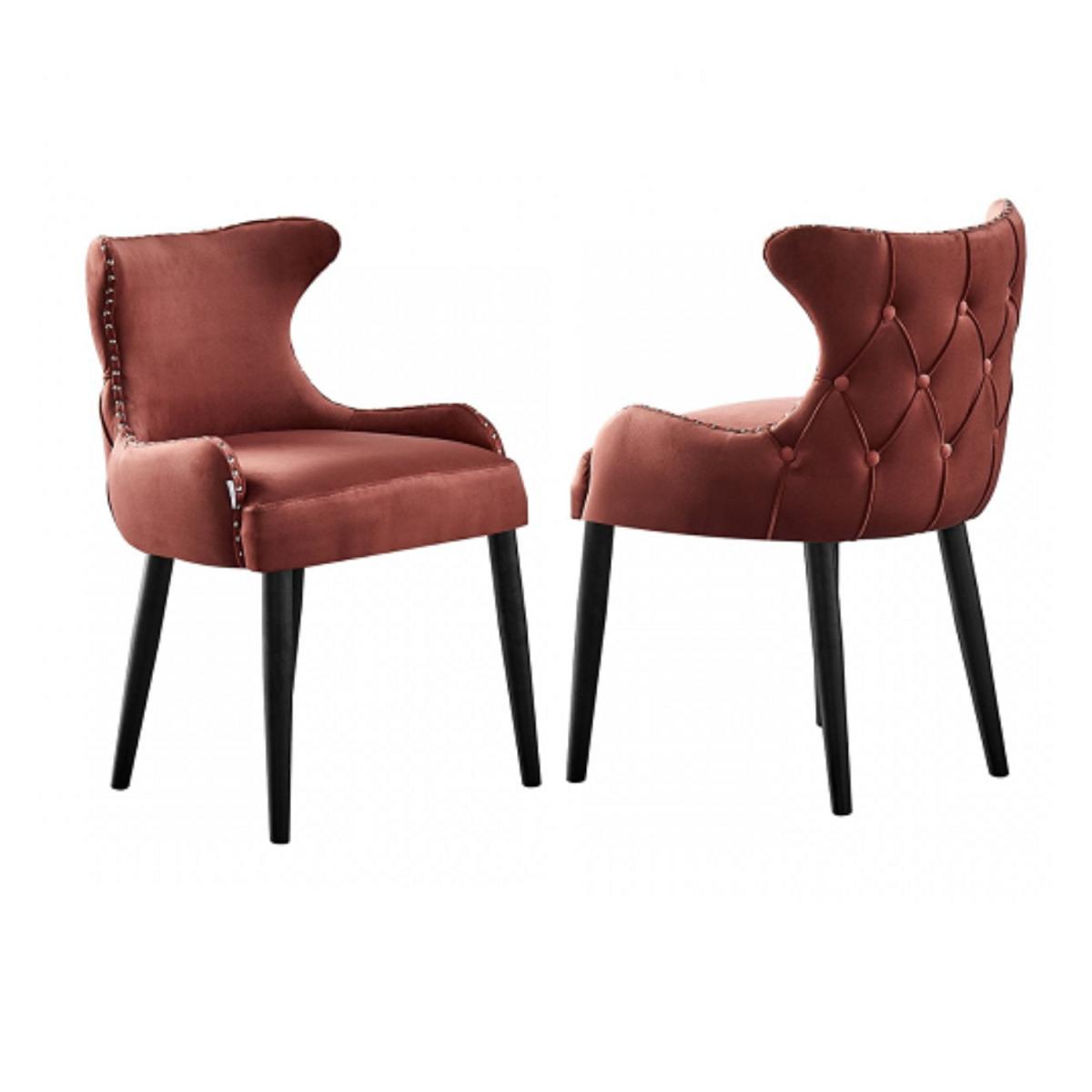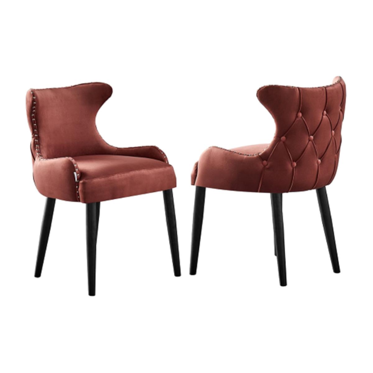 Introducing the Oxford Velvet chair featuring a padded seat quilted back, finished with amazing stud work and piping nestled on top of hard-wearing rubber wood legs, these design-led chairs will definitely be the life of the party if not steal the show! The beautifully smooth velvet finish to this chair is also complimented with detailed buttons which boast the pure beauty of the chair. The stylish dining chairs are incredibly practical for everyday use and will give a sophisticated touch to your furniture. Ideal to use in the kitchen, dining room, living room, bedroom, balcony, receptions, waiting rooms as dining room chair, kitchen chair, bedroom chair, relaxing chairs, office chair, living room chair or a desk chair. Upholstered in plush velvet and a high-quality density foam and fiber seat ensuring comfort levels are premium. A gentle curve to the back of the chair can fit your spine or back and provide you unparalleled comfort with each use ensuring you never want to use another chair again! Evoking a modern contemporary aesthetic.