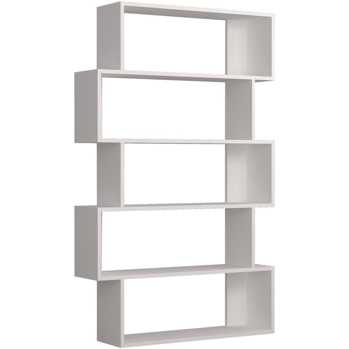 Introducing our unique asymmetric freestanding bookcase! Designed to enhance your home decor, this stylish bookcase adds sophistication to any room. Measuring 95 x 25 x 158 cm, it's ideal for small spaces like studios and dorms. With five tiers of shelving, you have ample space to display your favorite items in an organized and visually appealing way. Showcase books, decor, and personal items effortlessly. This modern and contemporary bookcase serves as a practical storage solution while adding a stylish touch. Its sleek design and clean lines make a statement that complements any decor style. Personalize it with our variety of color options. Choose from neutral tones or bold hues to match your room decor and create a look that reflects your style. Don't wait! Add this unique bookcase to your home and elevate your space with sophistication and organization. With its space-saving design, ample storage, and stylish appearance, you'll enjoy this bookcase for years to come.