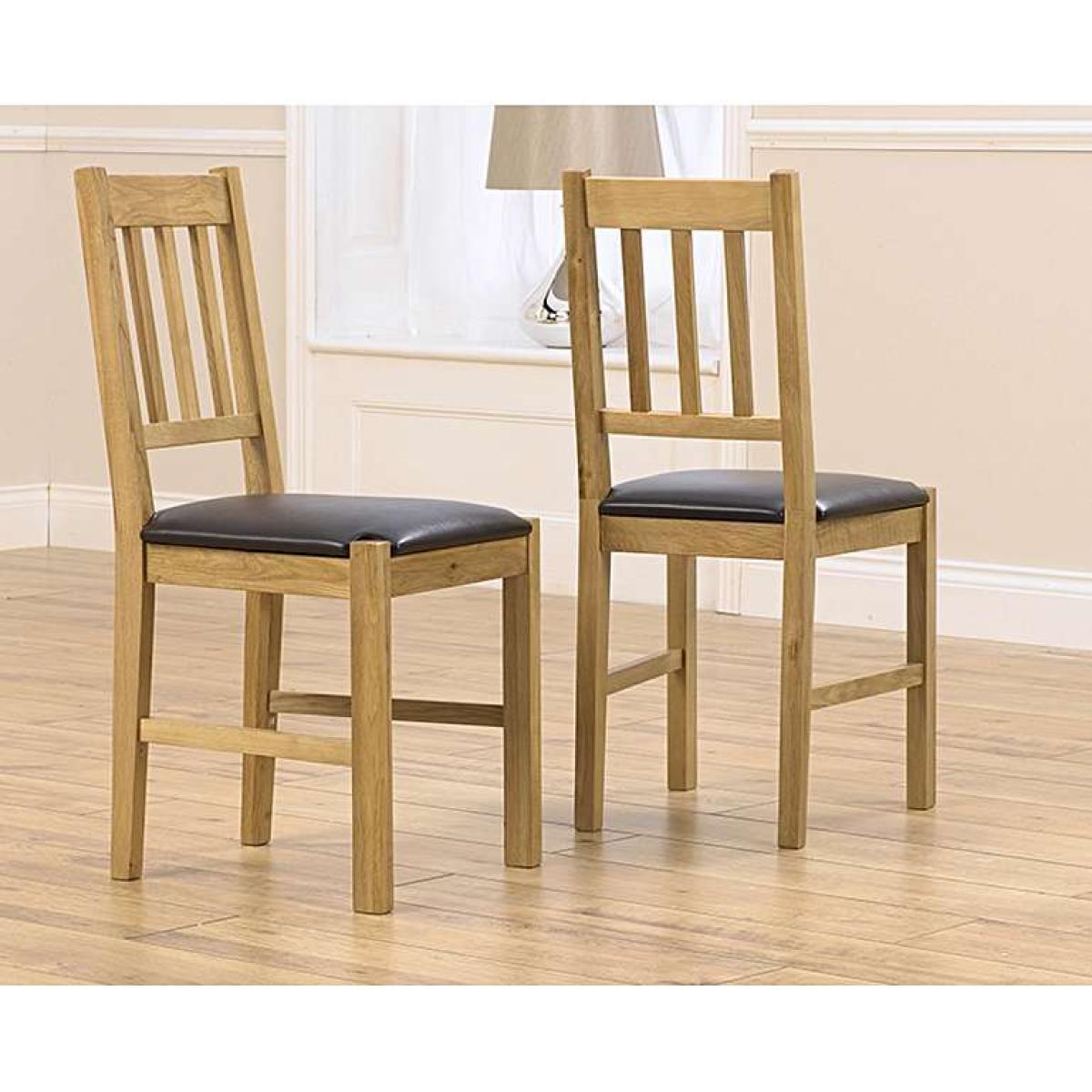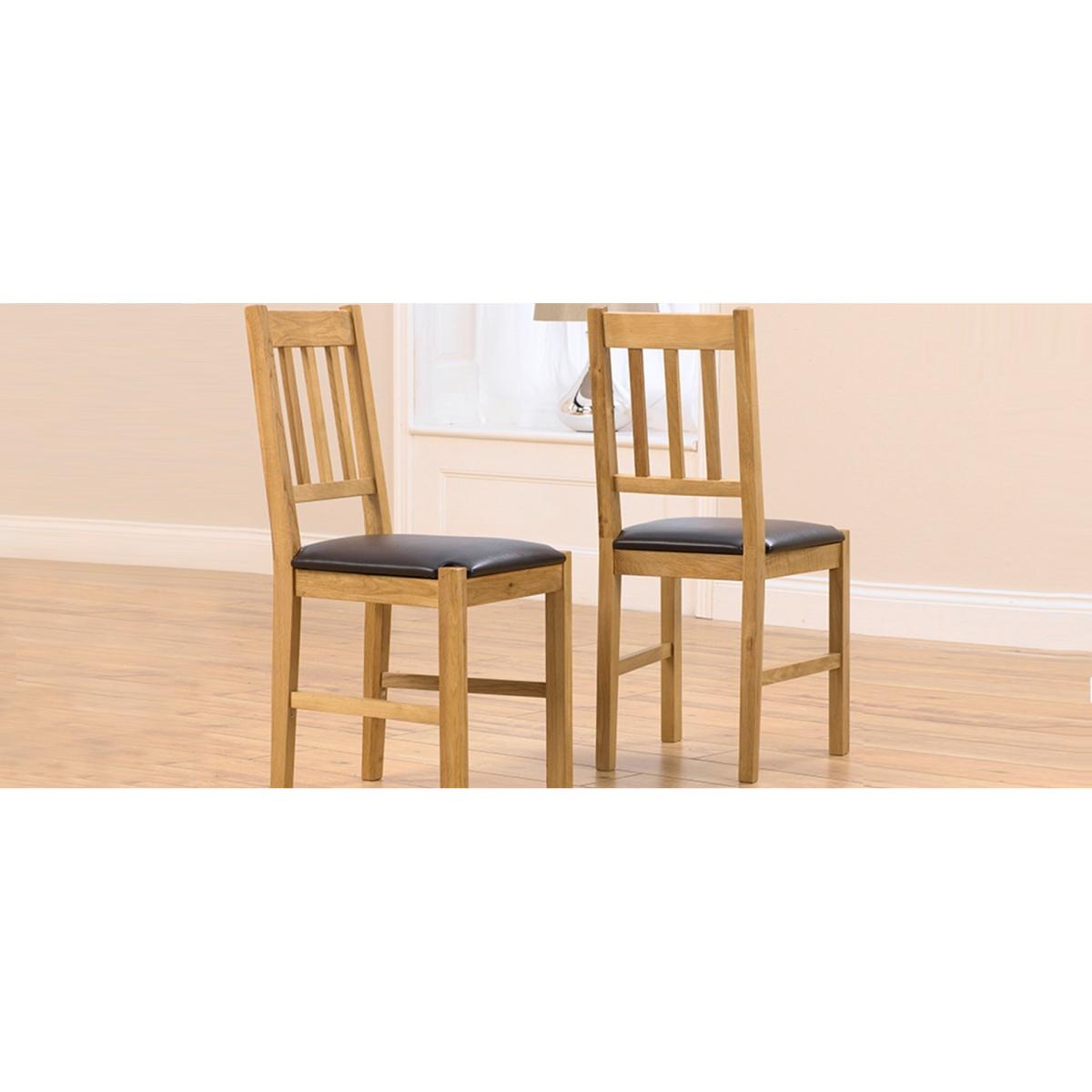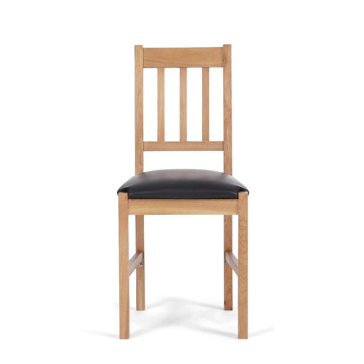 The Oxford Black Dining Chairs feature a classic design to complement any decor. Stylish and practical, the dining chairs are crafted from durable solid oak with a dark lacquer finish and feature a traditional slatted backrest. The oak dining chairs are complete with a black faux leather seat pad. Also Available in Oak and Brown.