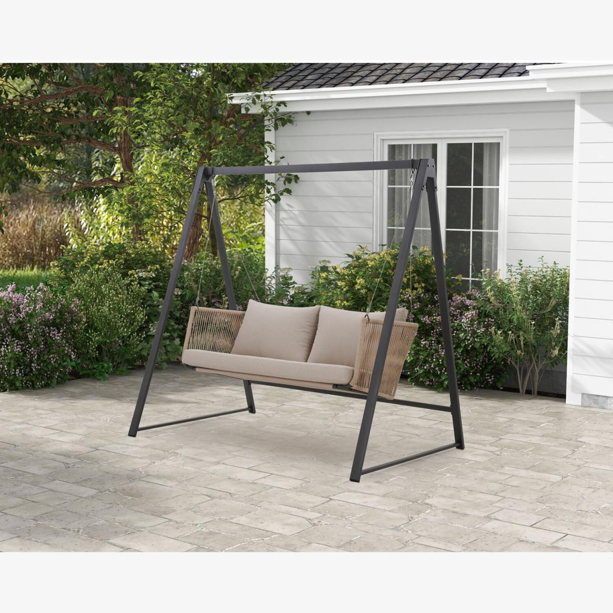 Relax and enjoy the summer sun in style with this Oxford Swing. Stylish and contemporary, this beautiful swing seat is the perfect place to enjoy a good book, catch up with a friend, or enjoy the fresh air. The gorgeous black frame and contrasting wicker detailing add a modern and chic feel that is guaranteed to look incredible in your garden or patio. Finished with luxuriously plush cushions, this swing seat will allow you to rock gently in ultimate comfort and style.