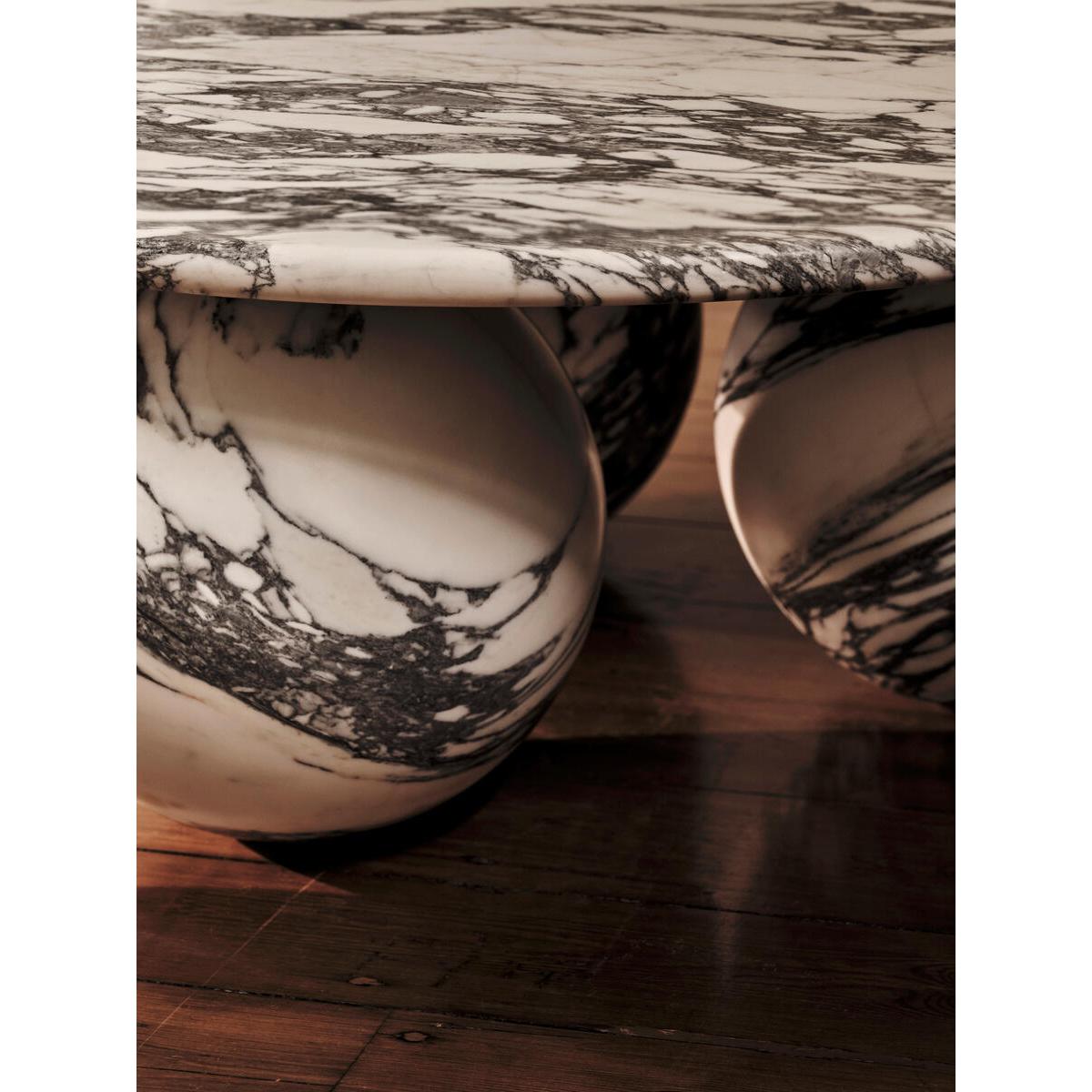 The short, rounded form and sleek surface of the Oxley coffeetable allow the grey veining and ivory clasts, typical of Italian Arabescato Corchia marble, to shine when it catches the light. Fitted with three marble spheres, the coffee table mirrors stylesfound at Soho House Rome. Display coffee books and coasters on topfor a homely finish. Honed Arabescato Corchia marble. White ivory clasts and grey veining. Marble sourced from Italy. Short, round design. Stainless steel and marble frame. Intricate veining of the marble makes each piece entirelyunique. Inspired by Soho House Rome. Weight: 206kg / 454. 2lbs.
