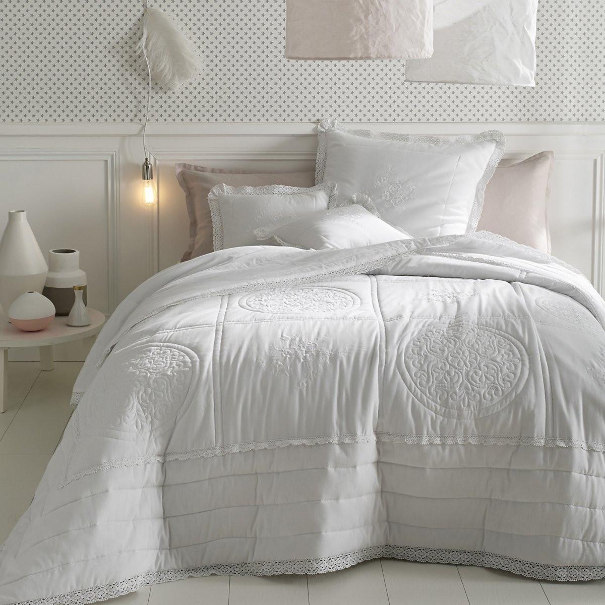 All the charm of yesteryear for this quilted Oyena quilted embroidered bedspread with a crochet ruffle.