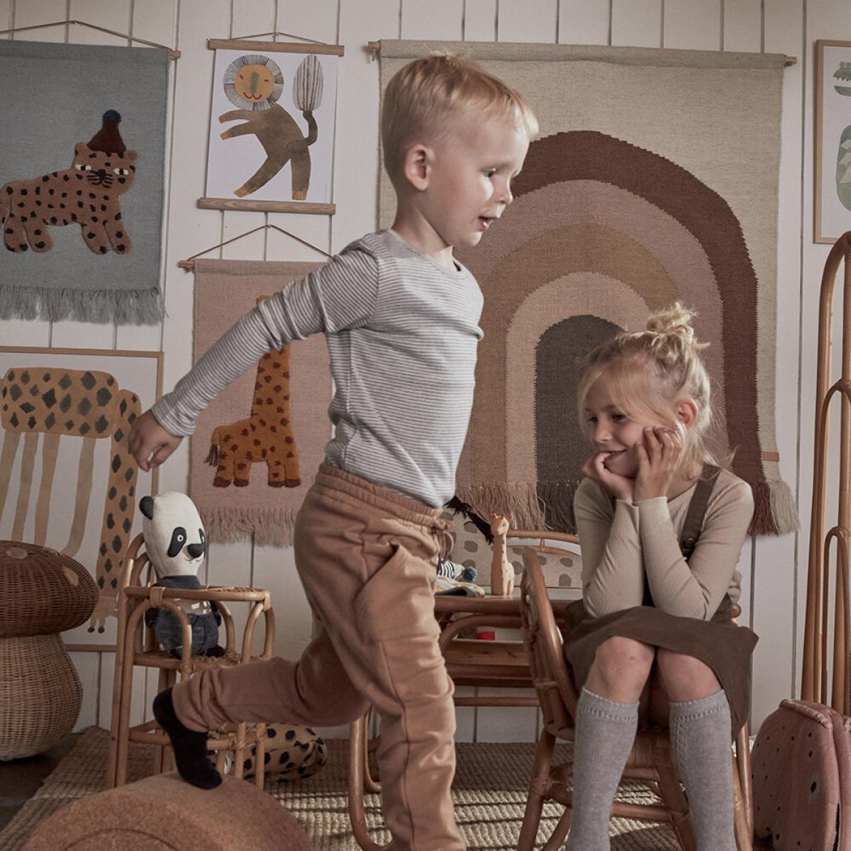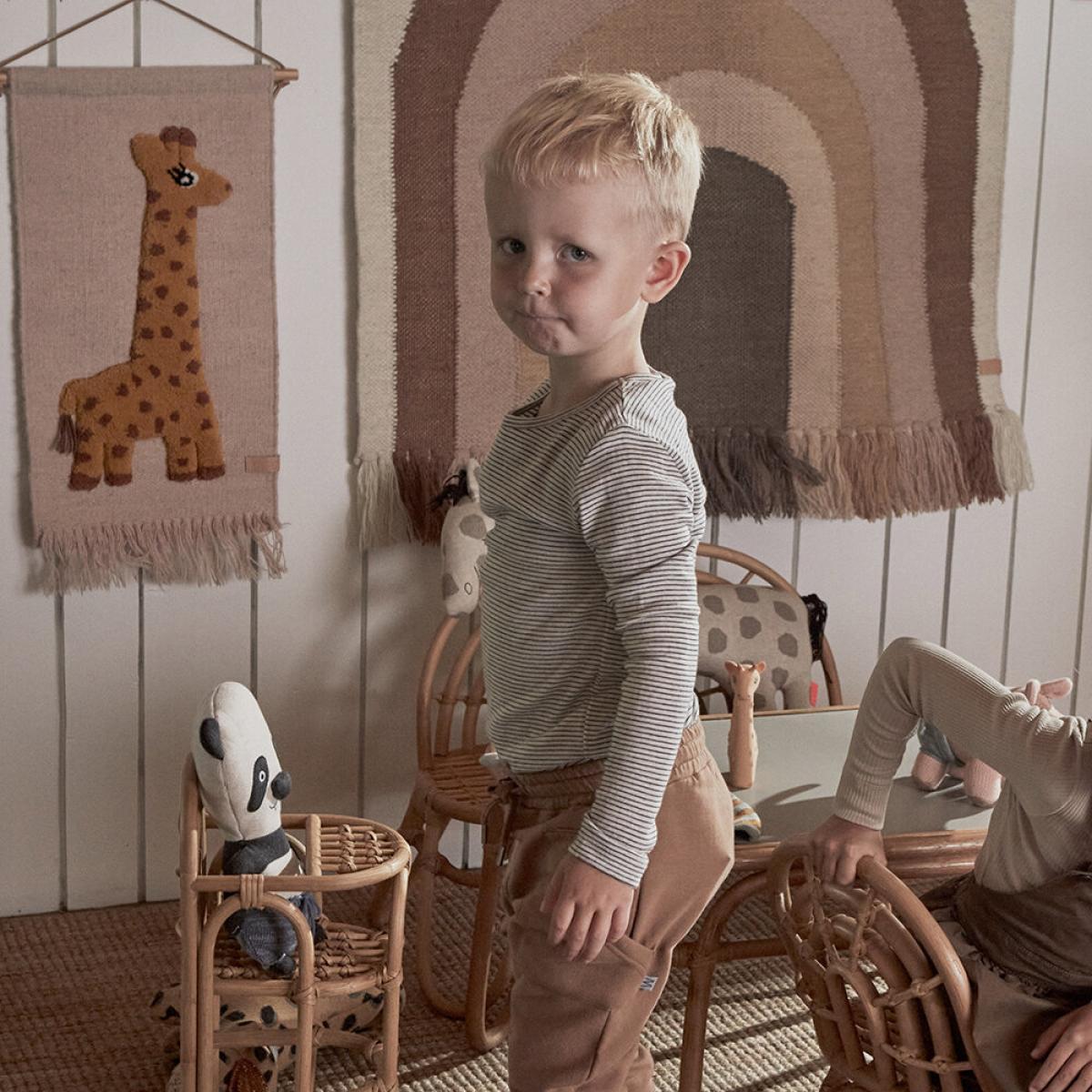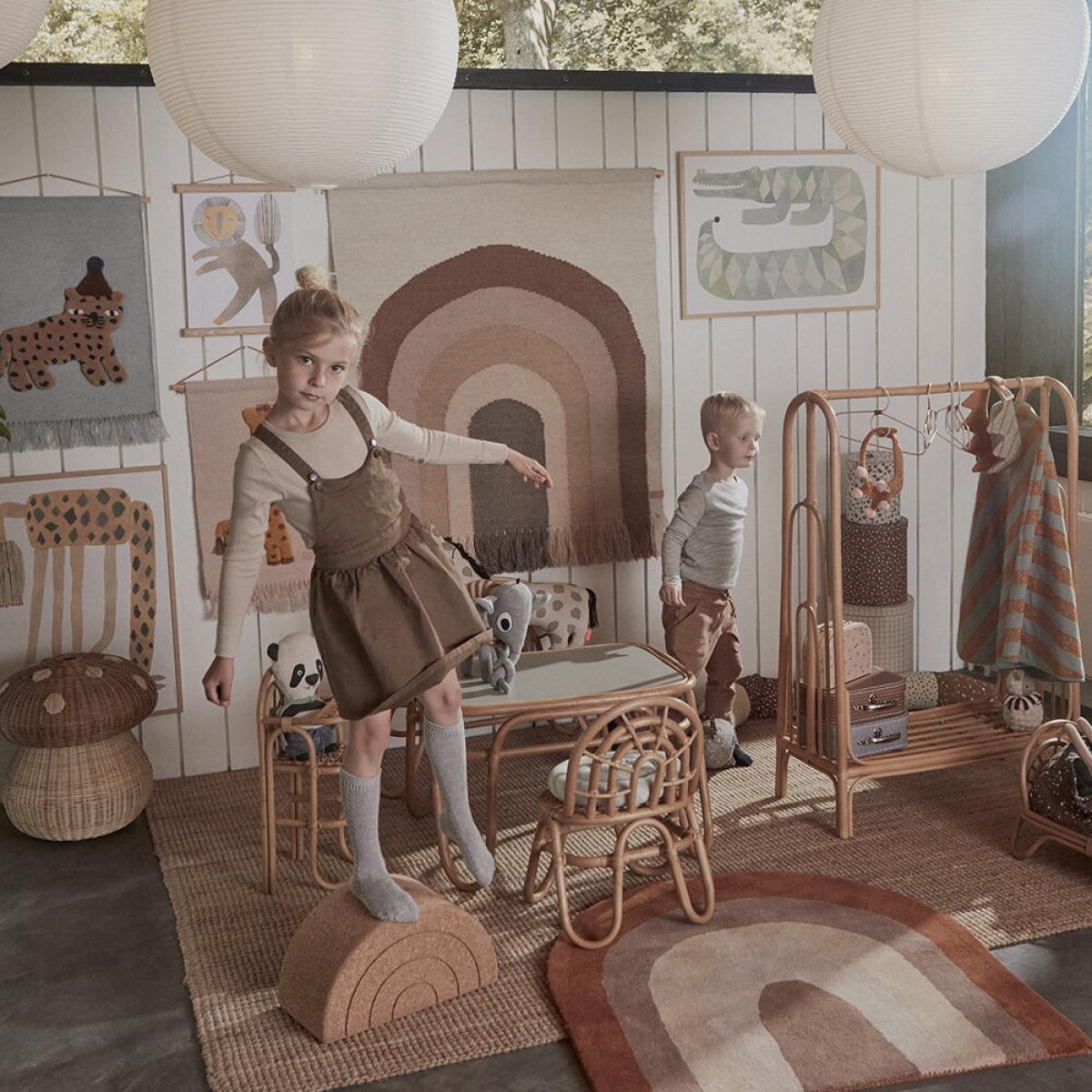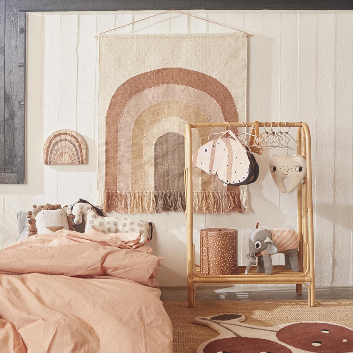 Add a splash of colour to your little one’s space thanks to this Rainbow wall rug from OYOY. Crafted from a super soft blend of cotton and wool, it features a charming rainbow design on a soft beige backdrop. Perfect for your child’s bedroom or playroom, it is complete with a wooden stick and leather string, ready for hanging.