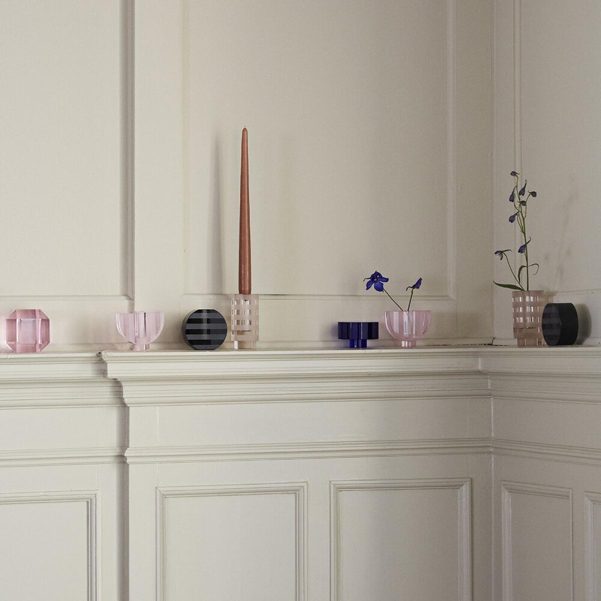Add contemporary style to your living space with the Graphic candleholder from OYOY. In an anthracite grey colour, this glass design features sandblasted stripes and a geometrical shape.
