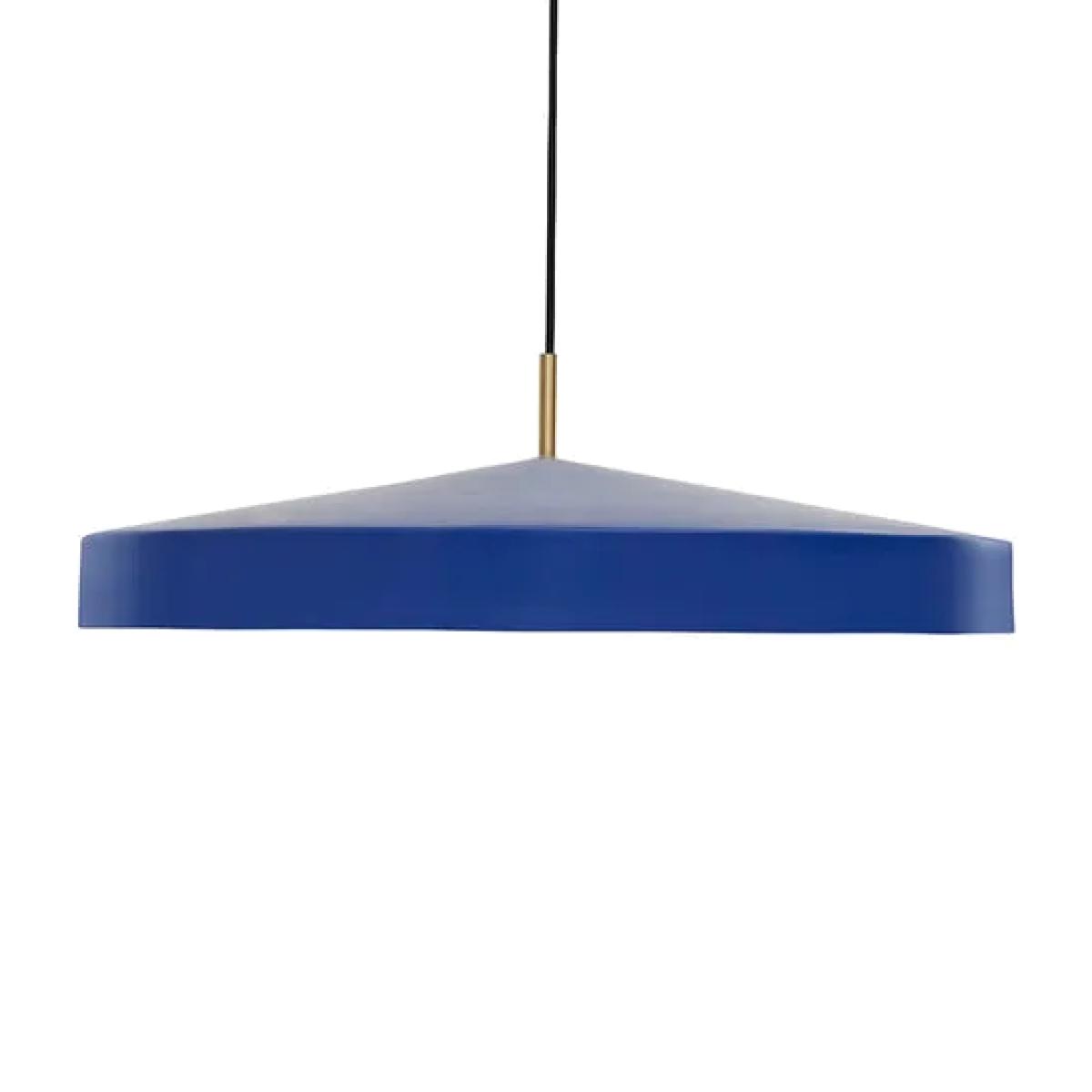 This pendant is a fantastic choice if you're after a modern, sculptural touch for your ceiling. I love the bold optical blue colour-it adds a contemporary pop without overwhelming the space. It works beautifully in minimalist interiors, Scandinavian-inspired schemes, or even more eclectic setups where a statement piece is needed. For styling tips, consider pairing it with natural wood or brass accents to balance its cool tone, and suspend it above dining tables or in a living room corner to create a distinctive focal point. Its clean, simple silhouette also makes it versatile for both residential and commercial spaces, adding functional style and colour in equal measure.