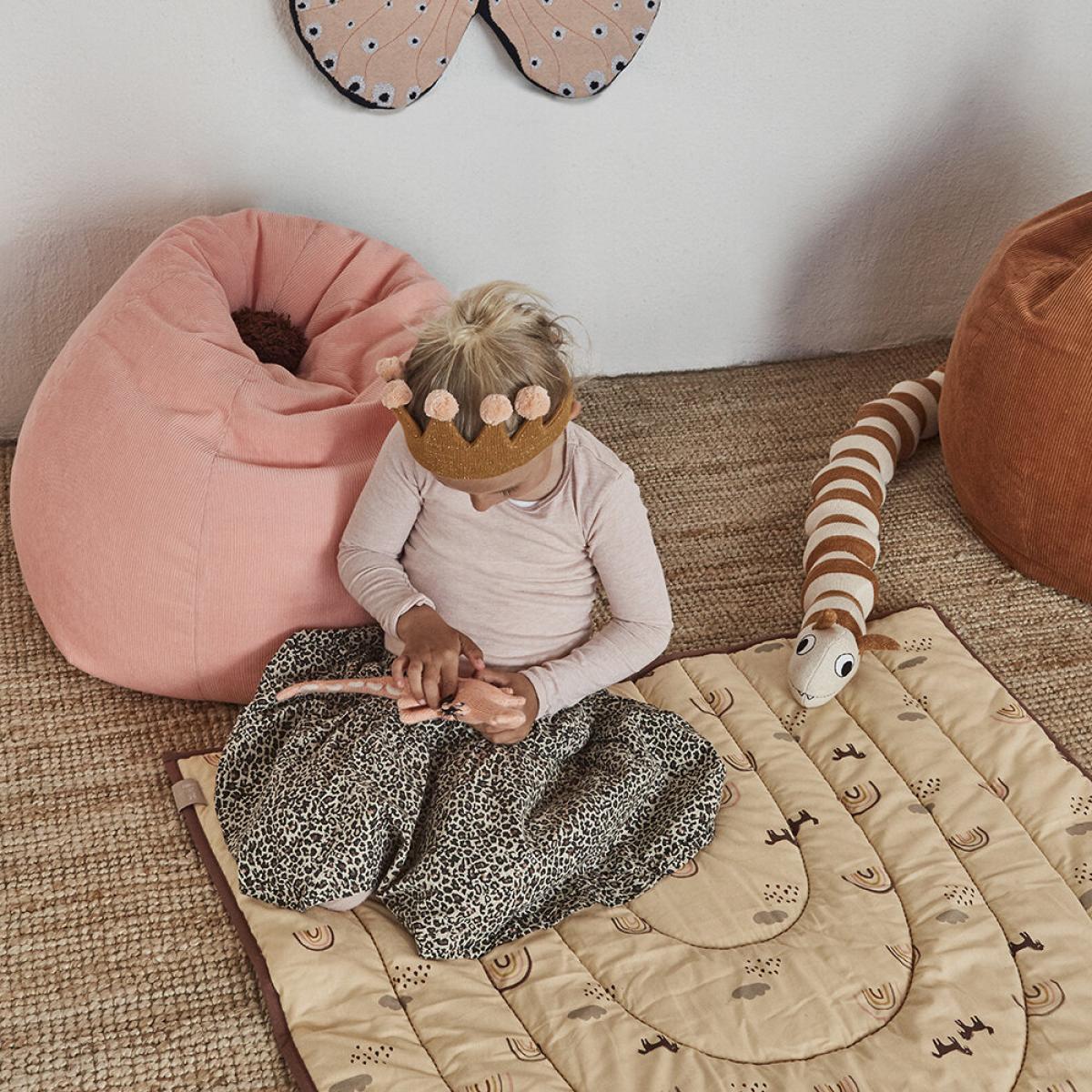 I love this little beanbag for its playful yet practical appeal. The pink corduroy adds a cosy texture that works well in both modern and more eclectic children’s rooms, especially those with soft pastel palettes or neutral tones. It’s a great addition for adding colour and comfort, perfect for lounging or reading corners. Styling tips include pairing it with a colourful rug and some tactile cushions to create a cosy, inviting space. Because of its simple shape and soft hue, it easily complements various interior styles, making it an adaptable piece that can grow with your child and fit seamlessly into different schemes.