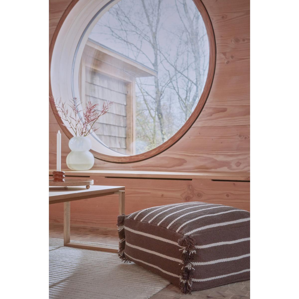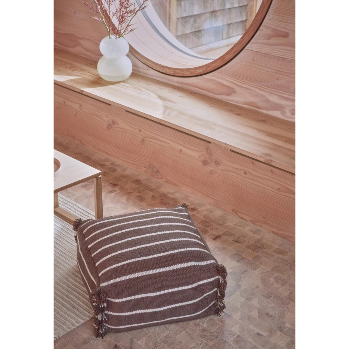 I love this pouffe for its versatile and cosy design. It works well in both contemporary and mid-century modern interiors, adding a touch of warmth with its textured fabric and neutral chocolate hue. It’s perfect for use as a footrest or additional seating in living rooms, reading nooks, or even bedrooms. Practical styling tips include pairing it with patterned rugs or layered textiles for a lived-in feel, or using it to add colour and texture to minimalist schemes. Its compact size makes it easy to manoeuvre and position wherever needed, making it a functional yet stylish addition to many spaces.