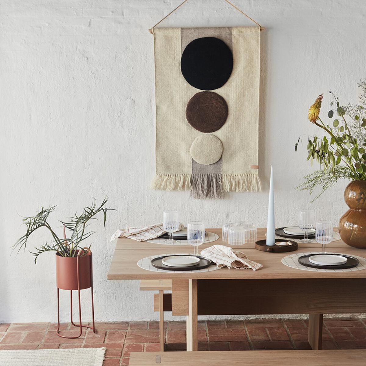 Add the finishing touch to your living space with this wall rug from OYOY. Made from a blend of wool and cotton, it has a muted colour palette and fringed edging. Pair with more home accessories from the brand to complete the look.