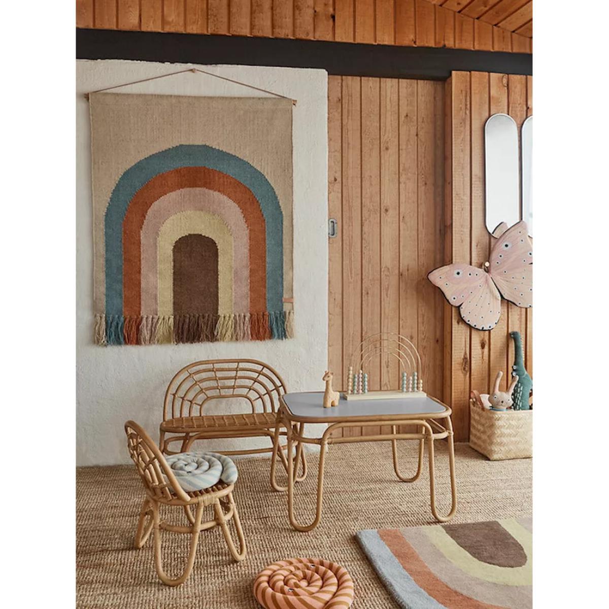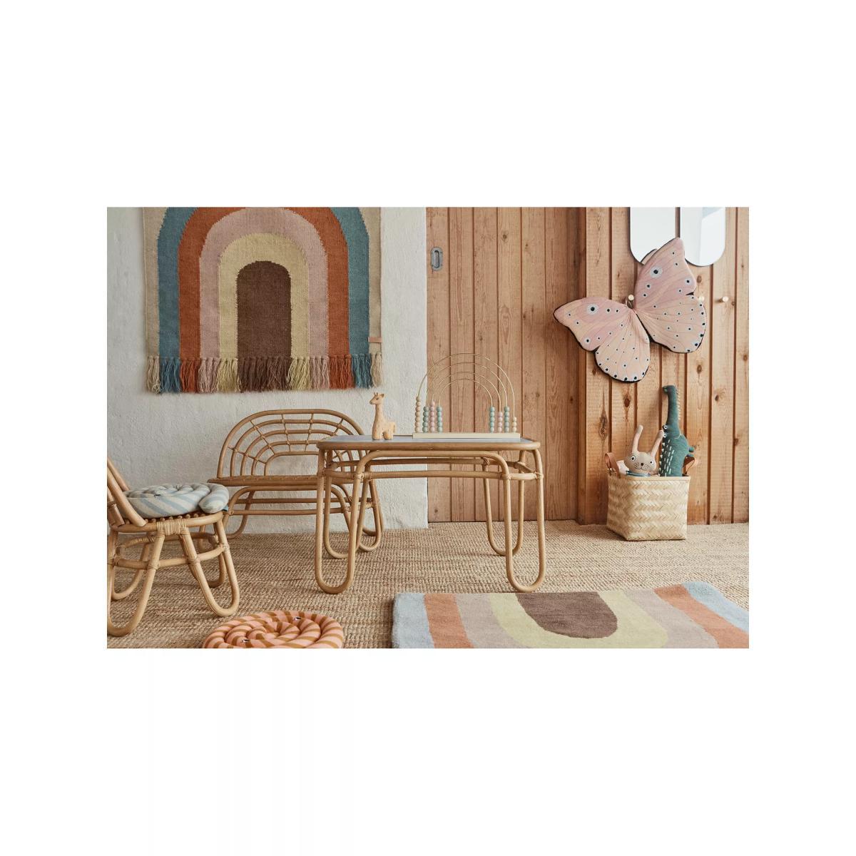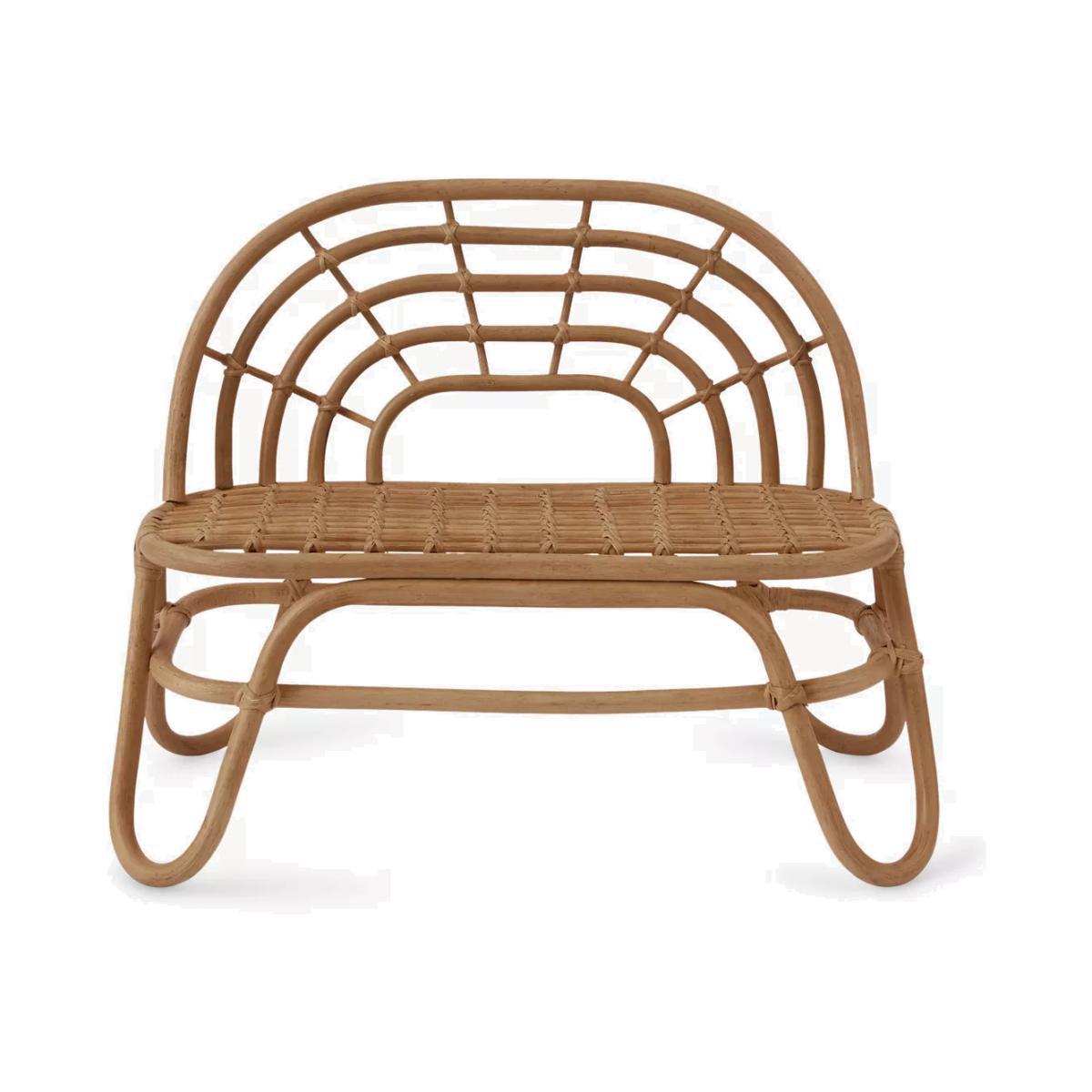 Carefully made from natural rattan, this small bench is perfect for children's rooms. Its soft, curved shape incorporates a rainbow-style backrest and you can either use it for playtime or keep it as a decorative addition to their room and style it with their favourite soft toys and pillows.
