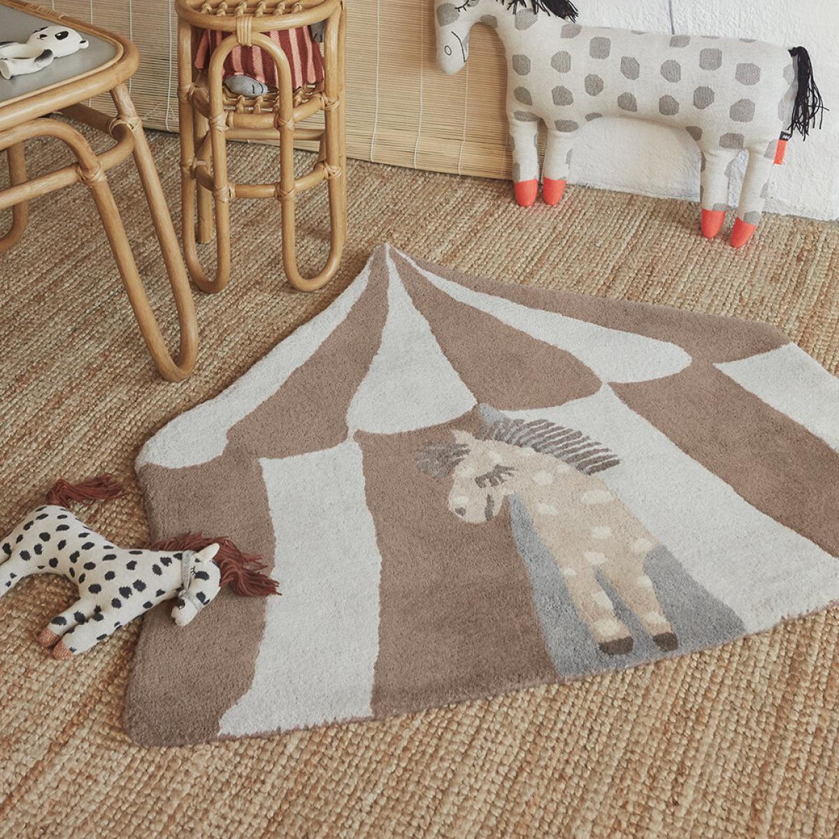Bring all the fun of the circus to your little one's play space with this Pippa rug from OYOY. In the shape of a circus tent, it features a playful polka dot horse poking themselves out of the tent opening. Made from a wool and cotton blend, it's soft underfoot and will be a welcome addition to every playtime. Key features: * Children's rug * Material: 80% wool, 20% cotton * Dimensions: H92xW102cm * Circus tent design * Vacuum and spot clean only