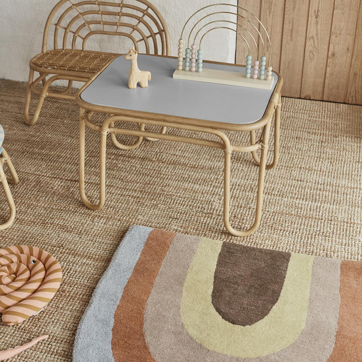 Add the finishing touch to their bedroom or play room with this rainbow rug from OYOY. Expertly crafted from wool and cotton, it has 5 muted colours that'll blend seamlessly into any space. Key features: * Rainbow rug * Material: 80% wool, 20% cotton * Dimensions: H88xW90cm * In the shape of a rainbow * In muted colours * More rugs available from OYOY