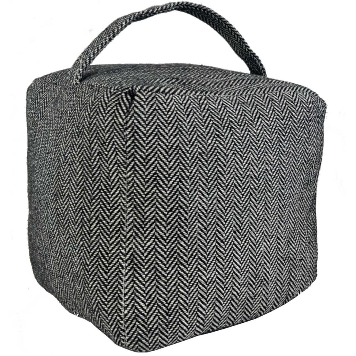Oypla Herringbone Fabric Heavy Weighted Cube Door Stop Stopper with Handle