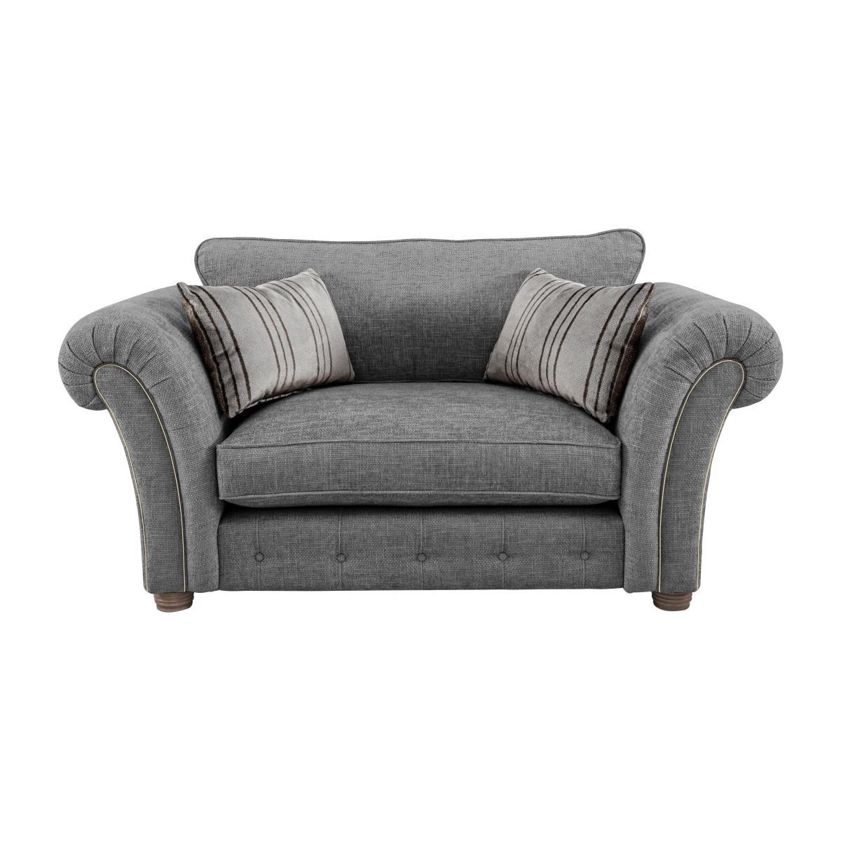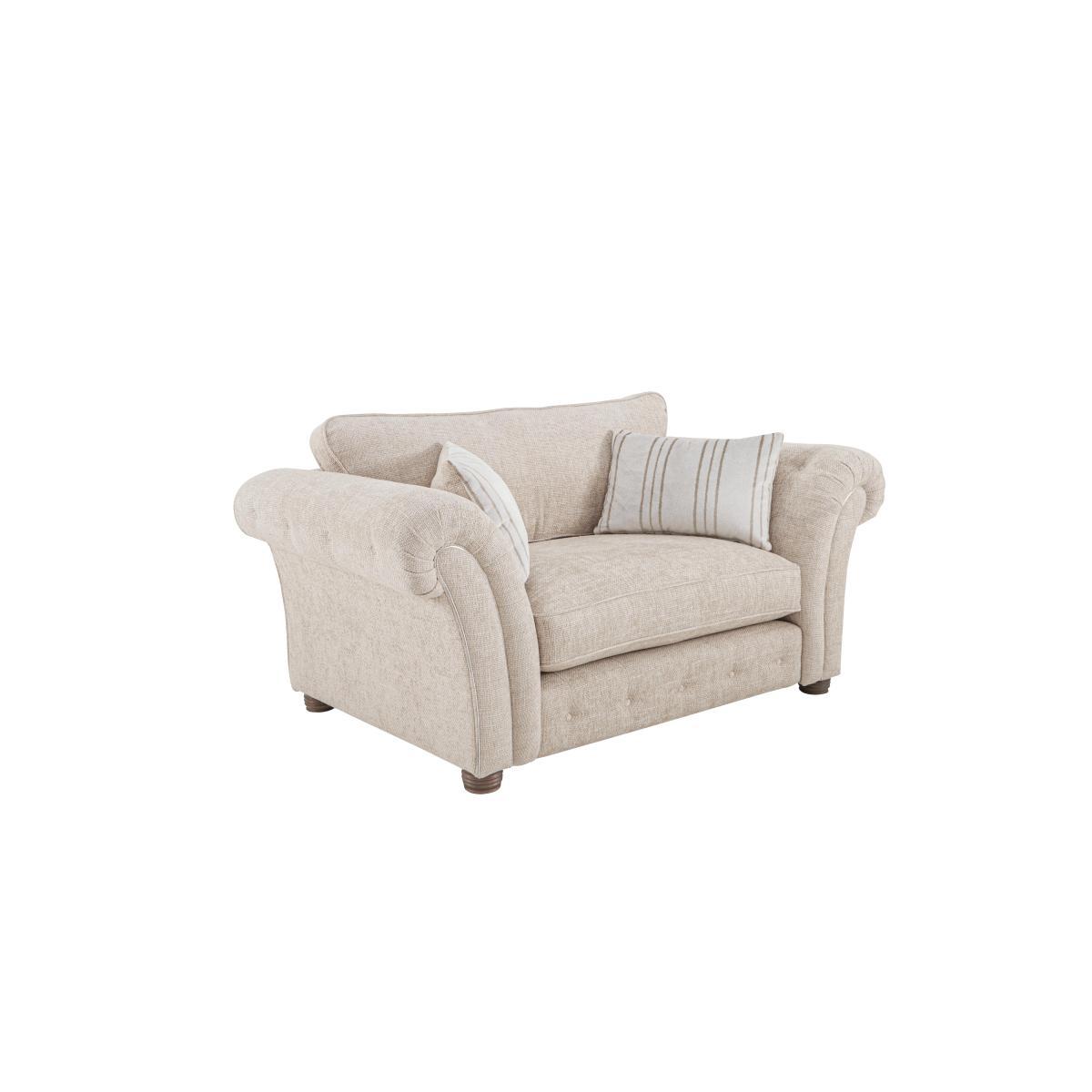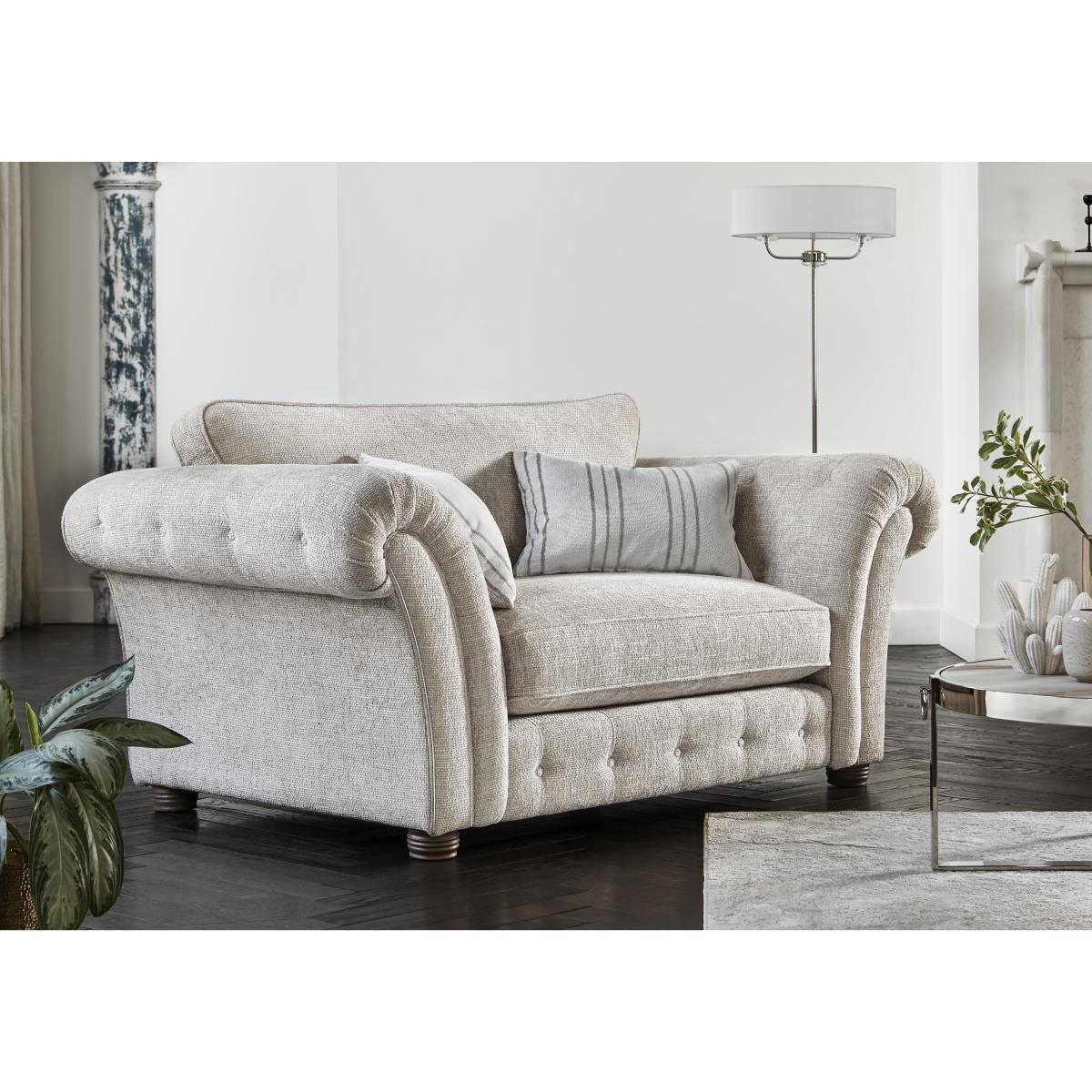 For when you want some quality relaxing time, there’s nowhere better – or more beautiful – than the Oyster Bay fabric classic back snuggler. Why you'll love it. A centrepiece snuggler, where elegant design meets luxe glam. Sink-into encore foam seat cushions with a 5-year plumpness guarantee. Extra-soft fibre back cushions. Classic scroll arms. Soft chenille upholstery. Optional silver or gold trim detailing. Two bolster cushions included. Stylish round lime wash feet. Handmade in the UK, exclusively for Furniture Village. What you need to know. Supportive zig-zag spring seats. Solid hardwood rails. Some fabrics can show wear on areas of more use or in direct sunlight. Plump, turn and rotate seat and back cushions regularly if possible. Please read our upholstery care guide for more advice. Part of the refined yet glam Oyster Bay range.