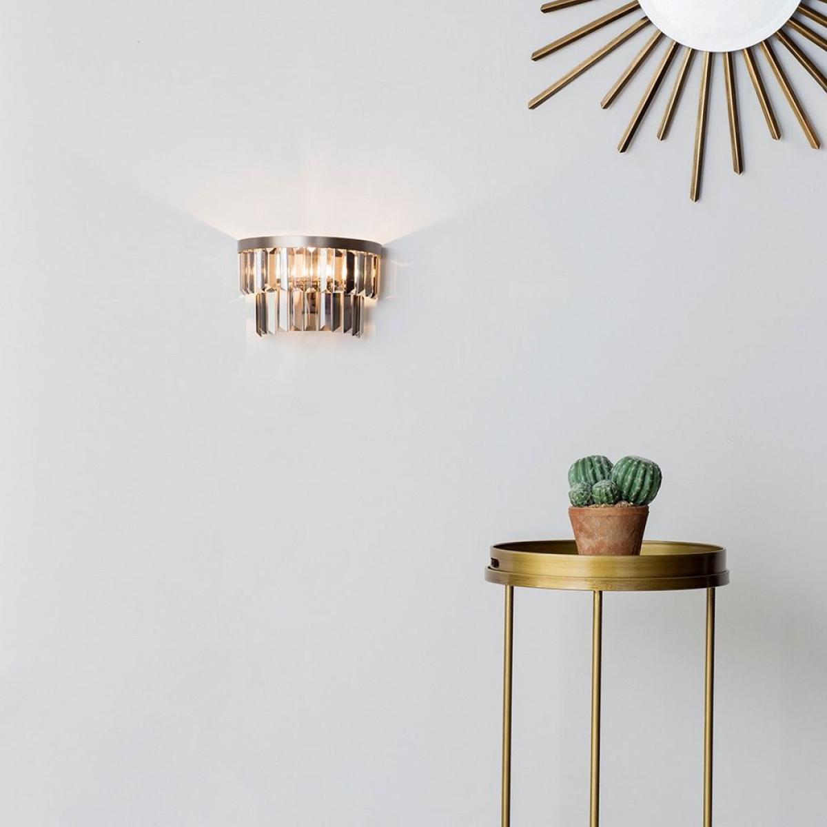 Wall lights are a popular way to give sophisticated ambient light to an interior, with their small, stylish structures really adding an elegant finish to any décor. The contemporary Ozzie wall fitting has a pewter colour and is decorated with smoke glass prisms, which have a clean cut modern image that’s perfect for an urban décor. Use the Ozzie on its own or as a set to give a great feel to a lounge or dining room!.