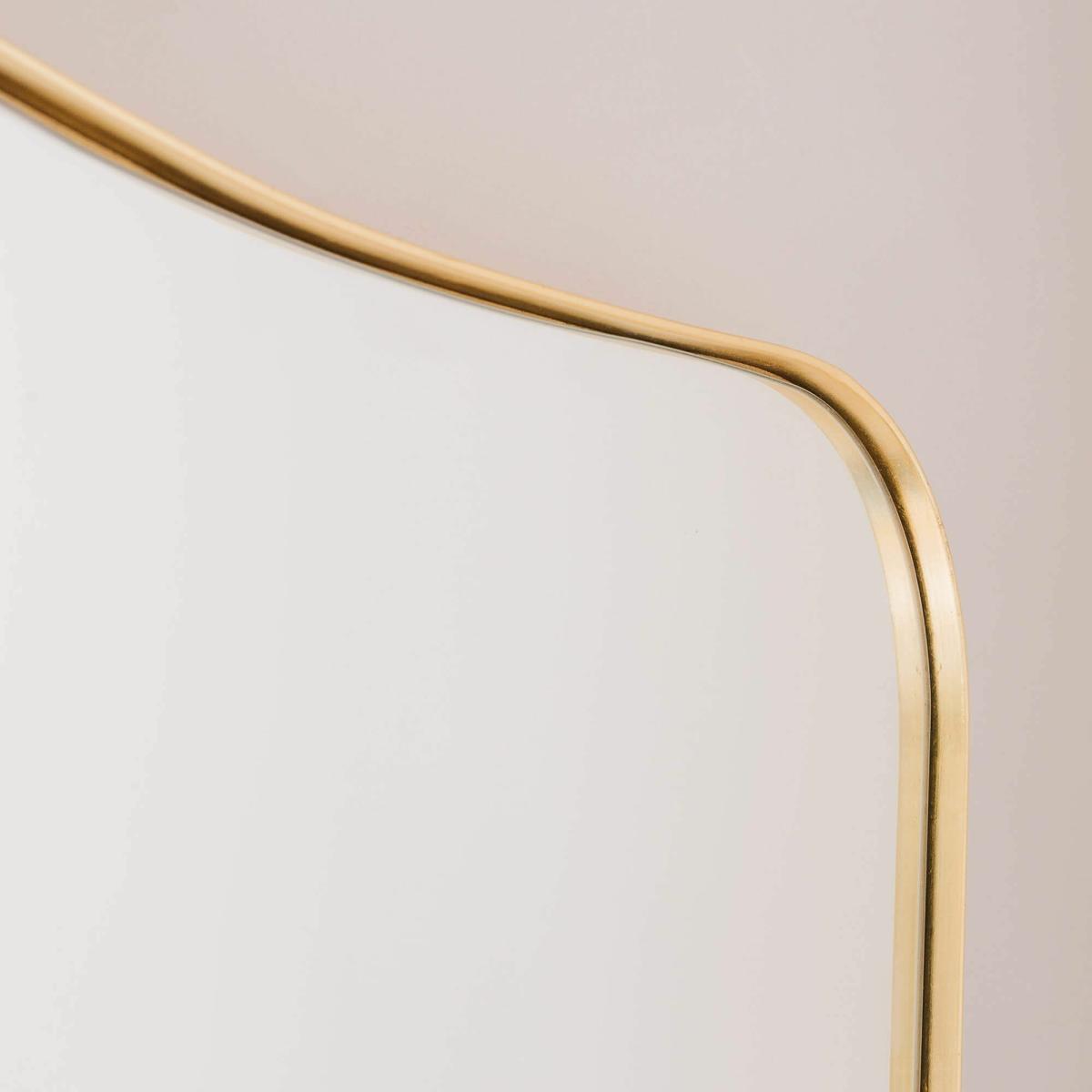 With rounded edges and a dipped rectangular shape, this contemporary gold mirror will add dimension to your bedroom or hallway.