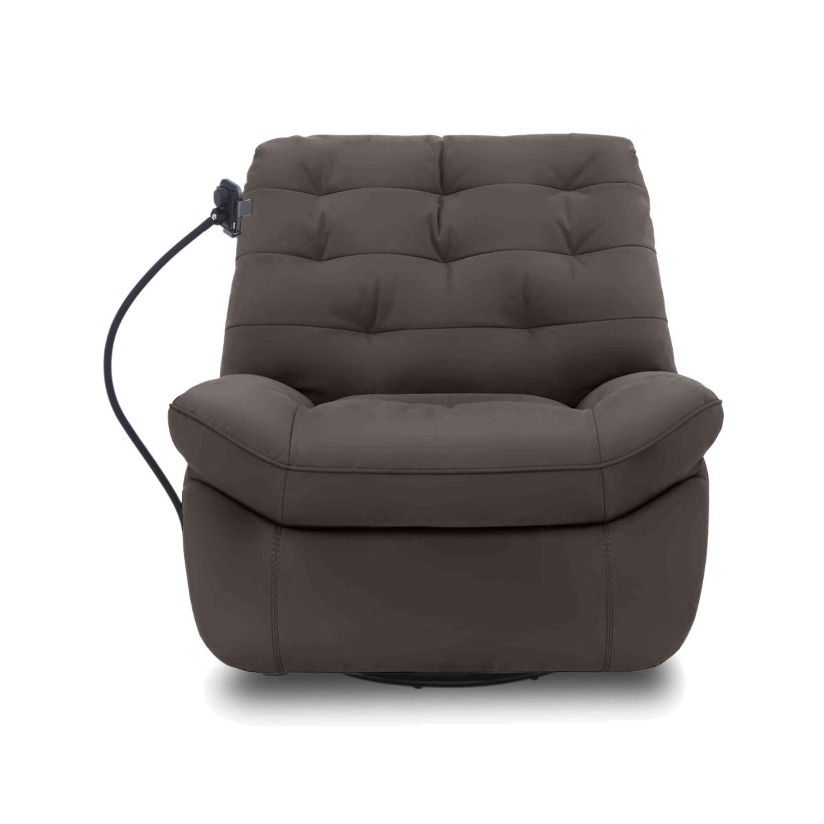 There’s relaxation – and there’s Ozzy-style relaxation. The incredible power reclining chairs in this collection take comfort to new heights and every direction. Each has a swivel base and independently adjustable power recliner and power elevating footrest so it’s easy to perfectly fine tune your comfort. The sprung seat and back with deep and luxurious cushioning promises comfort with support. And with a smartphone holder on a flexible arm plus built-in USB and USB-C charging, you can enjoy effortless hands-free media and phone time. Available in both 100% leather and high-quality fabric upholstery, the Ozzy range is exclusively available at Furniture Village. Enjoy hands-free phone viewing from the comfort of this ultra-cool swivel power recliner chair upholstered in beautiful leather. Relaxation has never been so stylish. Why you’ll love it There’s no end to this stylish power chair's comfort features. You’ll love the smartphone holder with flexible arm for hands-free viewing. The sprung seat and back feel fabulous. And the power recliner promises instant relaxation. Back recline and elevating footrest can be adjusted independently. With USB and USB-C ports for easy device charging. And, of course, it swivels. Cool curves are accentuated by the luxurious cushioning. Stylishly buttoned back cushion. In a huge choice of 100% leather upholstery colours to match any decor. Exclusive to Furniture Village. This leather swivel power recliner chair is part of our Ozzy range. What you need to know Medium comfort level. Seat suspension: no-sag spring. Seat cushioning: foam and fibre. Cushioning is fixed. Back suspension: rubber webbing. Back cushioning: fibre. Cushioning is fixed. Arm cushioning: foam and fibre. Please allow time for new recliners to ease. Minor gaps are necessary to ensure ease of recliner motion and may be exaggerated depending on floor type. Some fabrics can show wear on areas of more use or in direct sunlight. Clean regularly using a soft brush or vacuum with the curtain attachment. Deal with any spills promptly. Professional cleaning advised for oil- and grease-based stains. Please read our upholstery care guide for more advice.