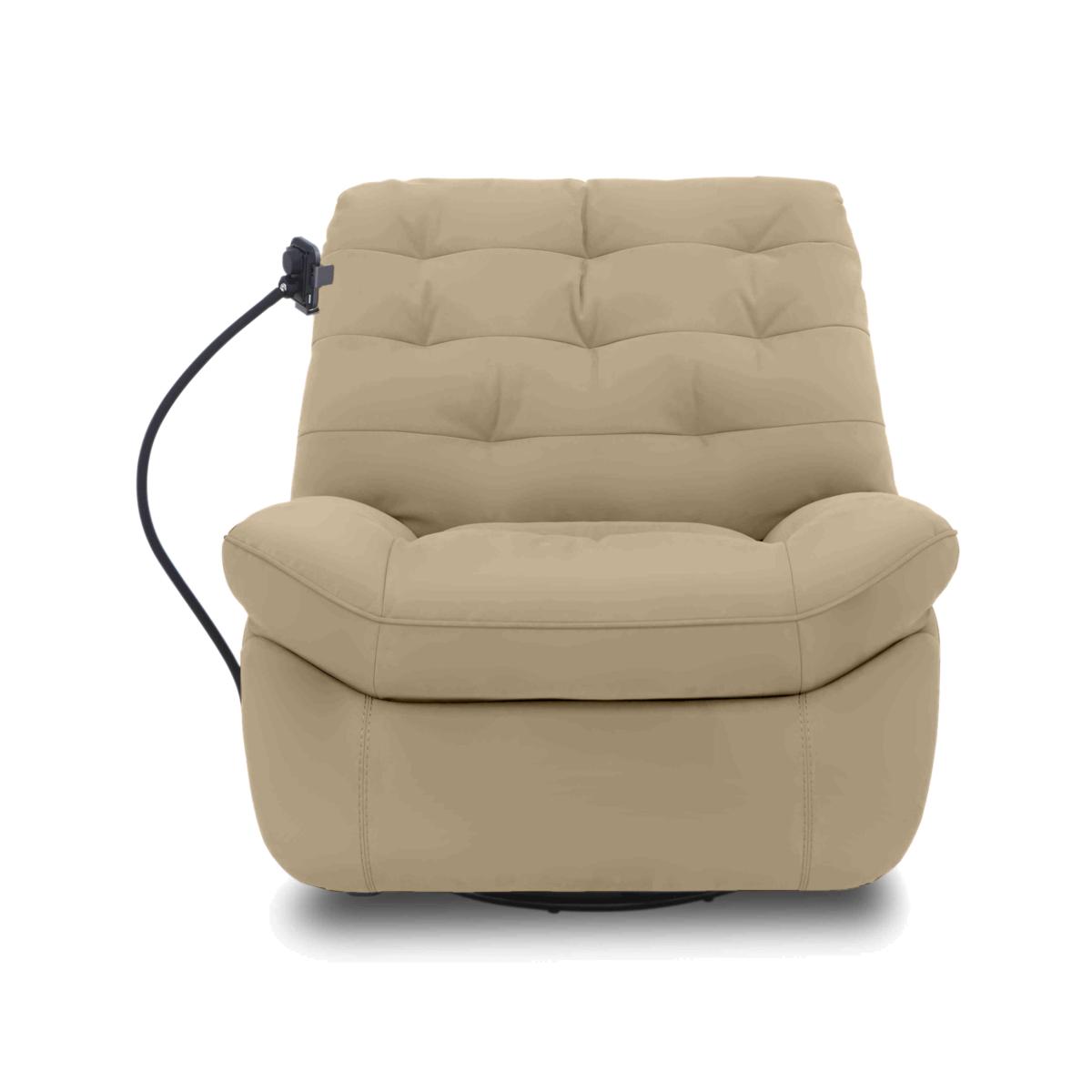 There’s relaxation – and there’s Ozzy-style relaxation. The incredible power reclining chairs in this collection take comfort to new heights and every direction. Each has a swivel base and independently adjustable power recliner and power elevating footrest so it’s easy to perfectly fine tune your comfort. The sprung seat and back with deep and luxurious cushioning promises comfort with support. And with a smartphone holder on a flexible arm plus built-in USB and USB-C charging, you can enjoy effortless hands-free media and phone time. Available in both 100% leather and high-quality fabric upholstery, the Ozzy range is exclusively available at Furniture Village. Enjoy hands-free phone viewing from the comfort of this ultra-cool swivel power recliner chair upholstered in beautiful leather. Relaxation has never been so stylish. Why you’ll love it There’s no end to this stylish power chair's comfort features. You’ll love the smartphone holder with flexible arm for hands-free viewing. The sprung seat and back feel fabulous. And the power recliner promises instant relaxation. Back recline and elevating footrest can be adjusted independently. With USB and USB-C ports for easy device charging. And, of course, it swivels. Cool curves are accentuated by the luxurious cushioning. Stylishly buttoned back cushion. In a huge choice of 100% leather upholstery colours to match any decor. Exclusive to Furniture Village. This leather swivel power recliner chair is part of our Ozzy range. What you need to know Medium comfort level. Seat suspension: no-sag spring. Seat cushioning: foam and fibre. Cushioning is fixed. Back suspension: rubber webbing. Back cushioning: fibre. Cushioning is fixed. Arm cushioning: foam and fibre. Please allow time for new recliners to ease. Minor gaps are necessary to ensure ease of recliner motion and may be exaggerated depending on floor type. Some fabrics can show wear on areas of more use or in direct sunlight. Clean regularly using a soft brush or vacuum with the curtain attachment. Deal with any spills promptly. Professional cleaning advised for oil- and grease-based stains. Please read our upholstery care guide for more advice.