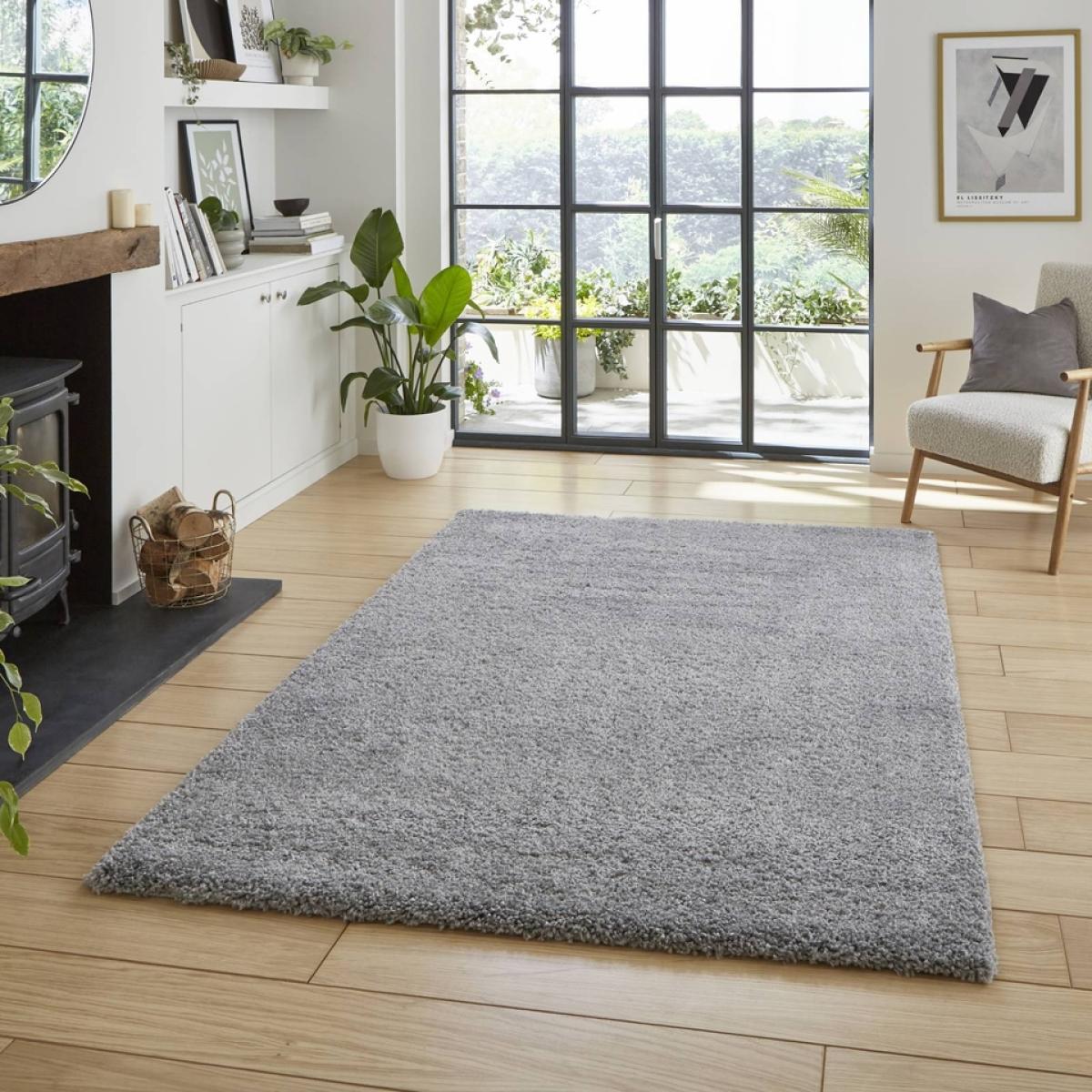 The Ozzy Plain Shaggy Rug in Grey, measuring 200x290cm, the perfect addition to any living room or bedroom. This rug features a heavy weight shaggy pile construction made from high-quality polypropylene, providing a soft and plush feel underfoot.