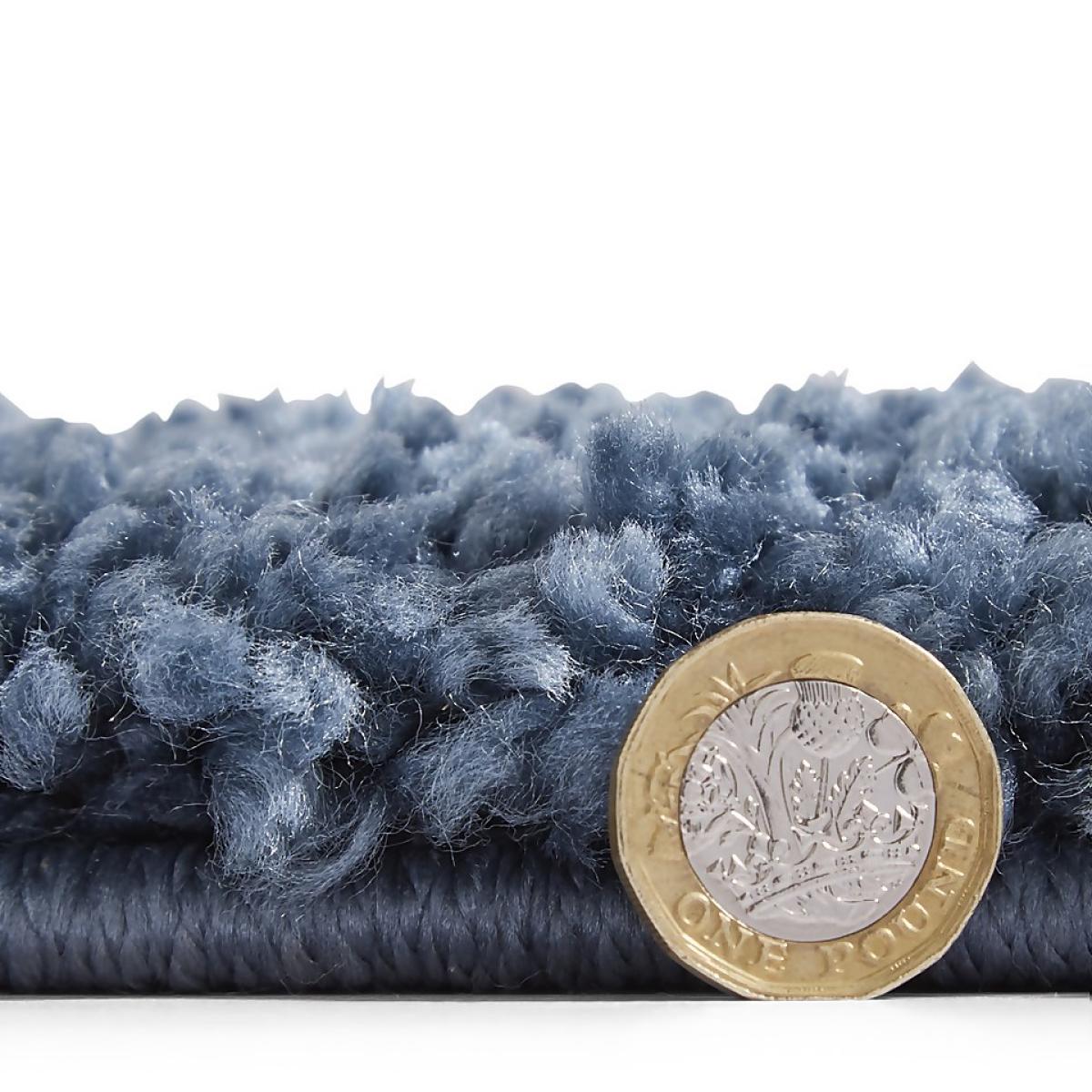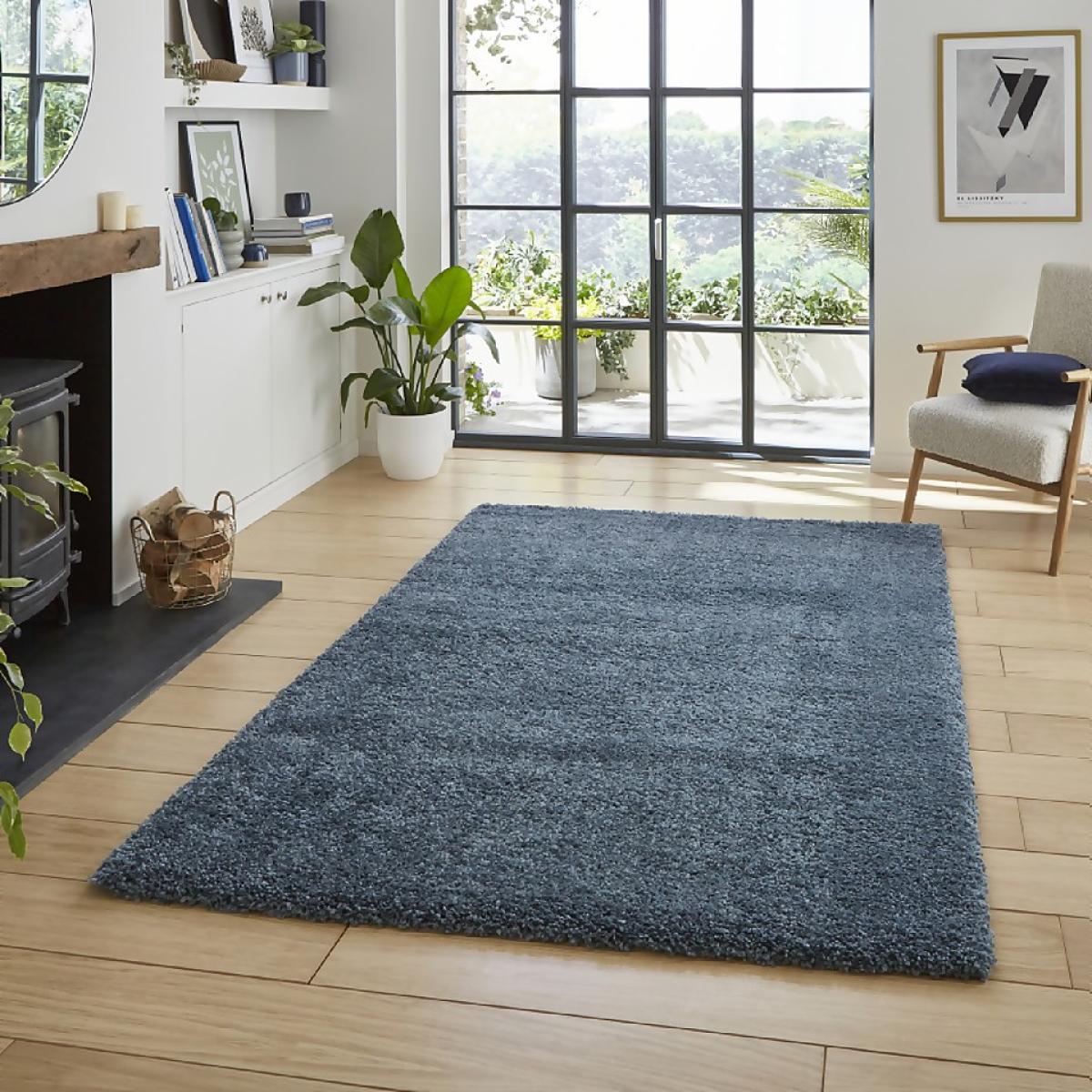 The Ozzy Plain Shaggy Rug in Petrol Blue, measuring 80x150cm, the perfect addition to any living room or bedroom. This rug features a heavy weight shaggy pile construction made from high-quality polypropylene, providing a soft and plush feel underfoot.