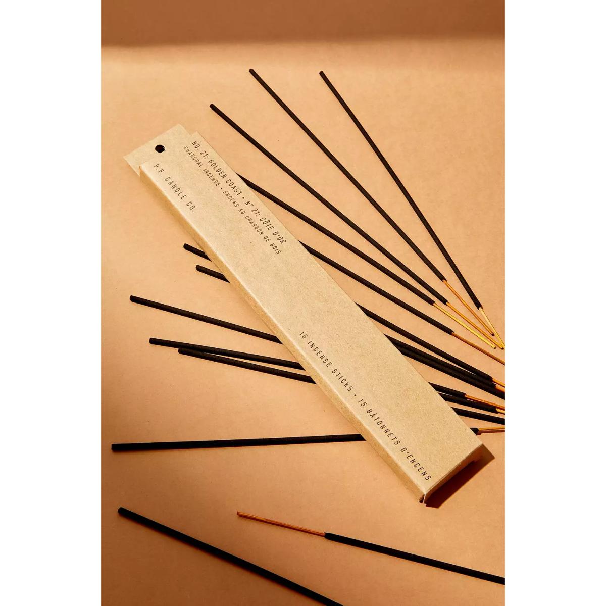 Incense by the apothecary experts at P.F. Candle Co. Hand-dipped in fine fragrance oil and packed with care in their LA studio, each kraft envelope contains 15 sticks that last an hour each! Simply place in a holder (not included) on a non-flammable surface, gently light the charcoal tip + extinguish then let the room fill with fragrance. **Content + Care** \- Wood, Charcoal, Fragrance oil \- Made in the USA \- Incense holder not included **Size** \- L: 27.3cm \- Burn time: 1 hour each \- Includes 15 sticks