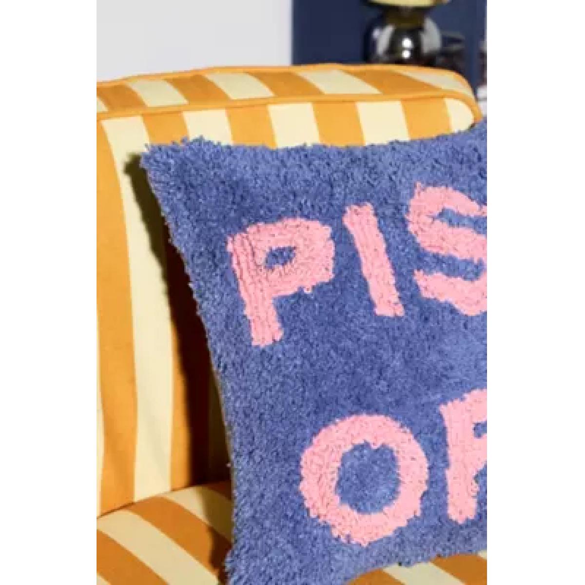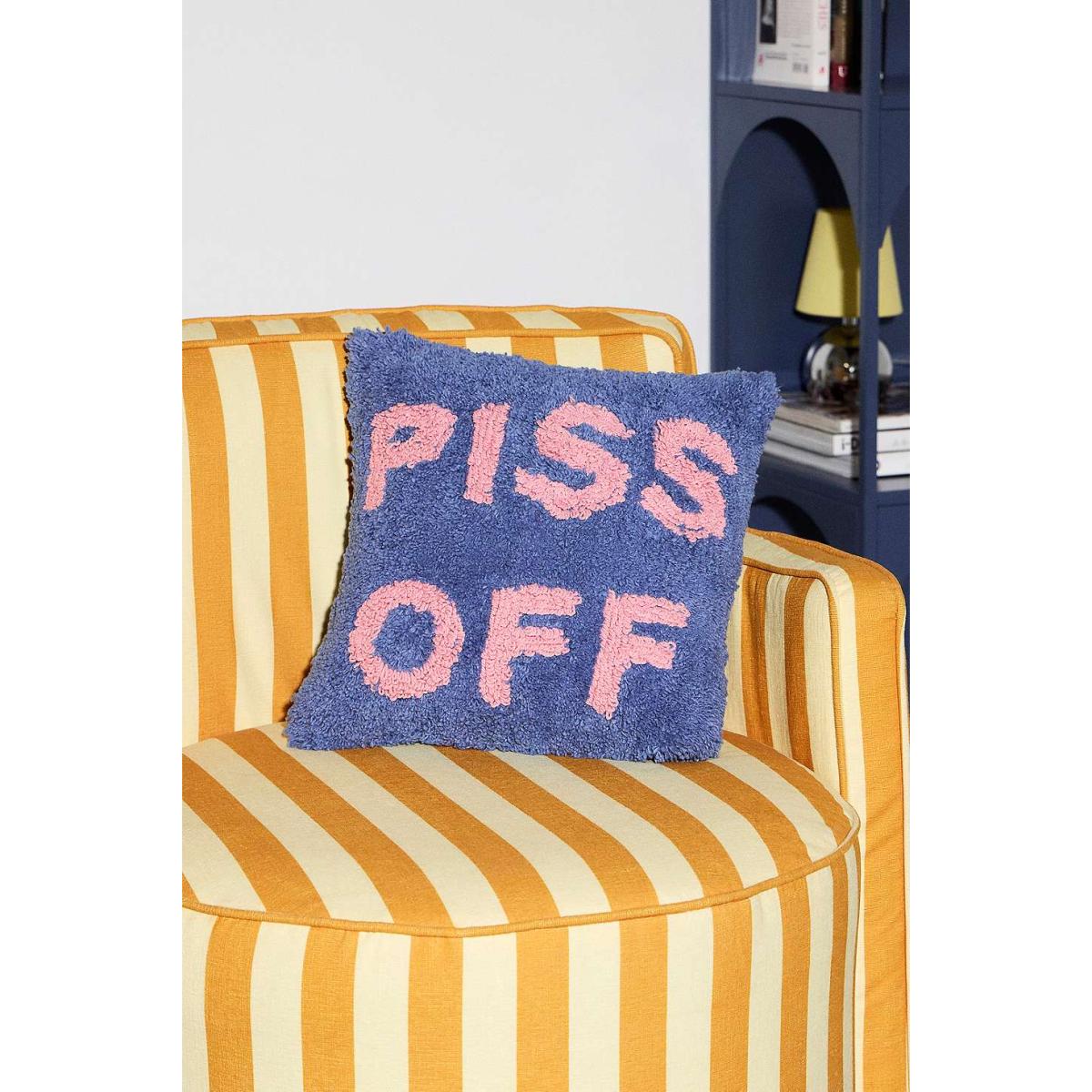 Cheeky cushion with a contrasting 'P*SS OFF' slogan. Square shape with a textured cotton outer and removable soft filling. **Content + Care** \- Outer: 100% Cotton \- Filling: 100% Polyester \- Removable insert \- Machine wash **Size** \- 35.5cm x 35.5cm