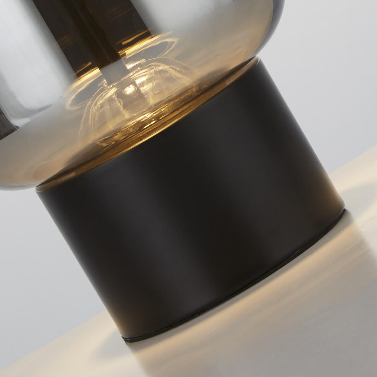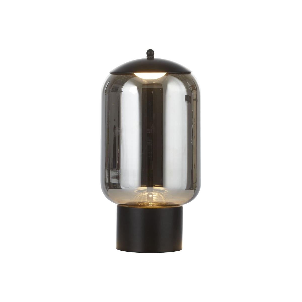 With integrated LED, which is energy efficient, and will help reduce household expenses, this smoked glass table lamp is both practical and stylish. The smoked glass shade sits on a contrasting black base, creating a modern lamp, ideal for any living space or bedroom.