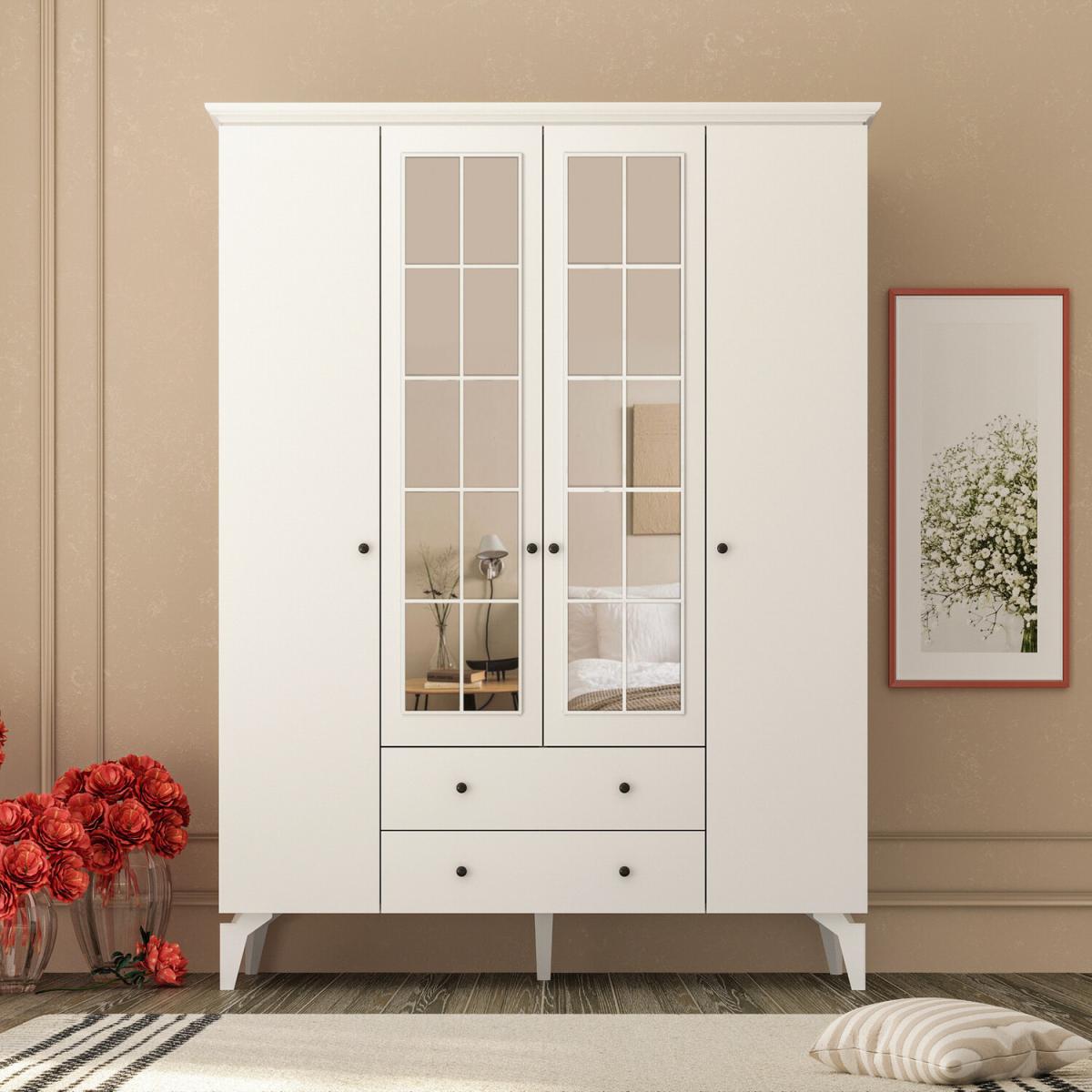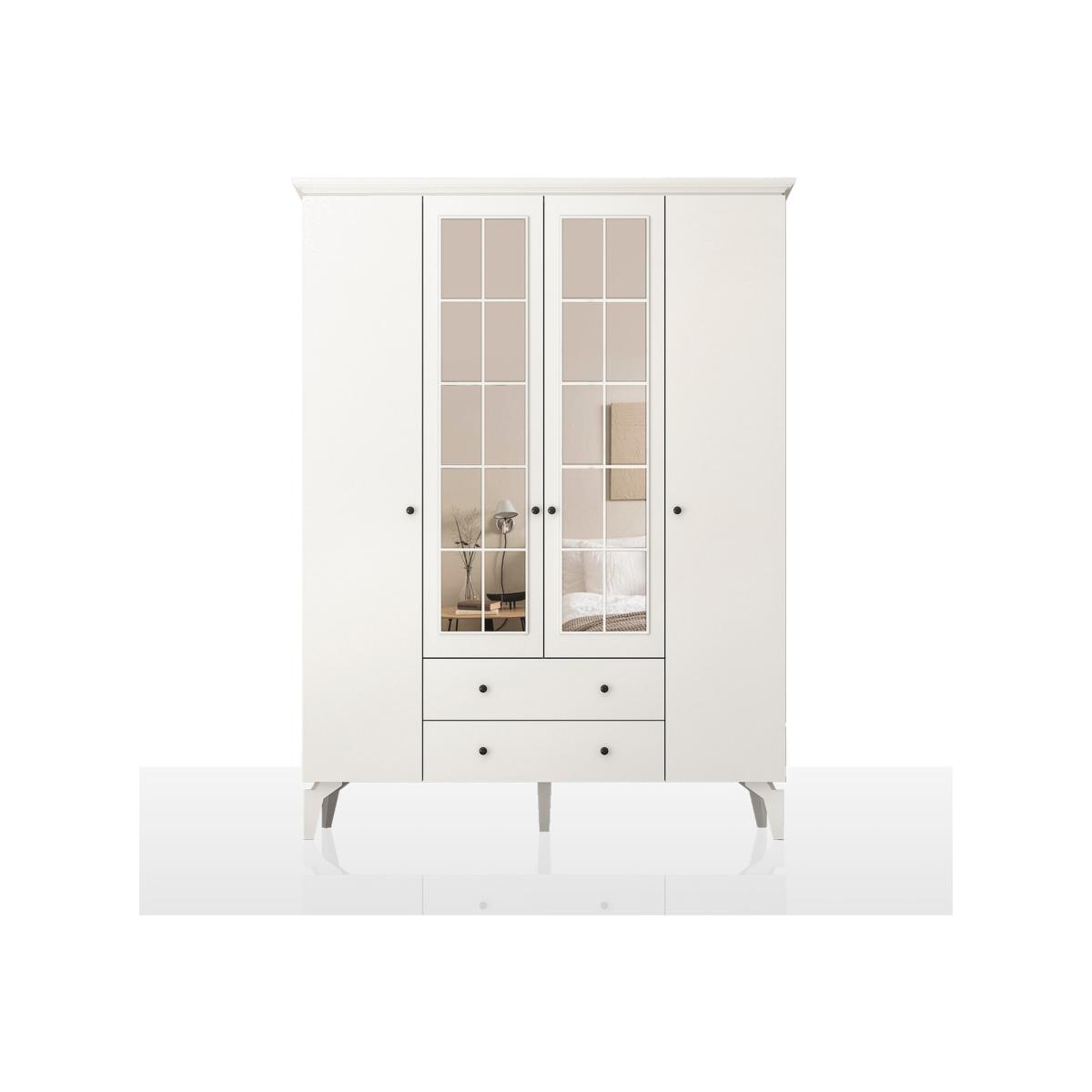 PABLO Plus 4 Door 2 Drawer Mirrored Wardrobe, White - White
