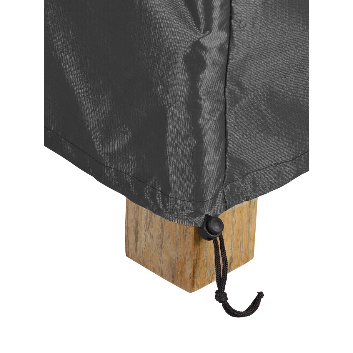This Aerocover fits garden chairs stacked together up to H110 x W67 x D67cm. The cover is water-resistant, breathable and provides UV protection. Toggles ensure a snug fit. Made of strong and lightweight ripstop polyester that's easy to handle and takes up little space when not in use. Comes with a handy storage bag. Great for protecting and covering your outdoor furniture all year round.