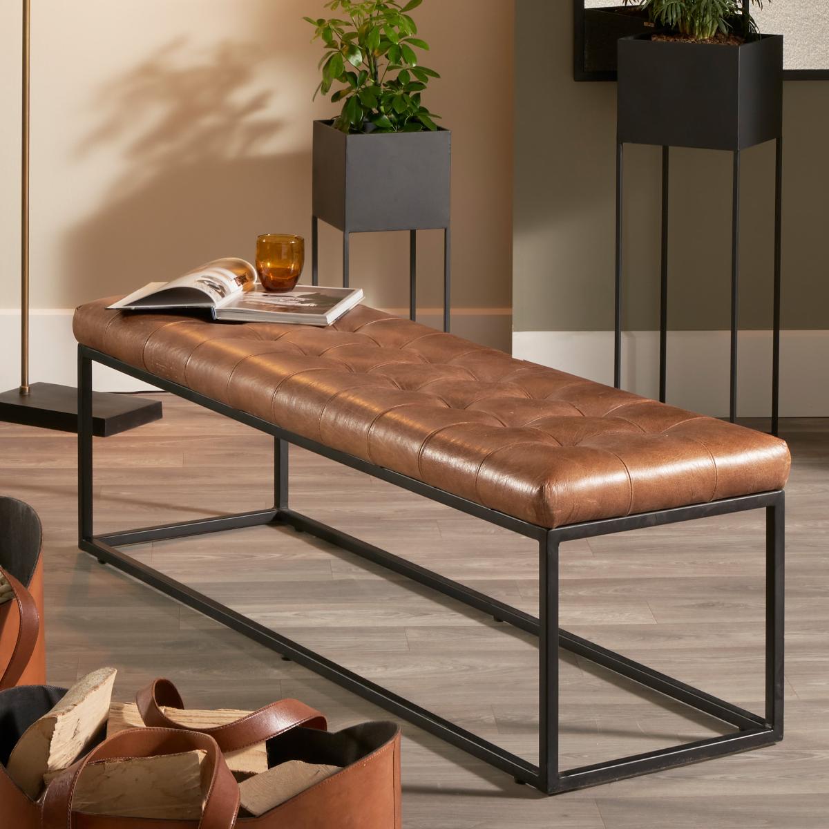 Whether you use this seat around your table or under your window, this bench will be a great way to seat your guests. The real leather has been hand stitched and made in India around an iron frame. This frame has been tested to hold up to 160kg in weight.