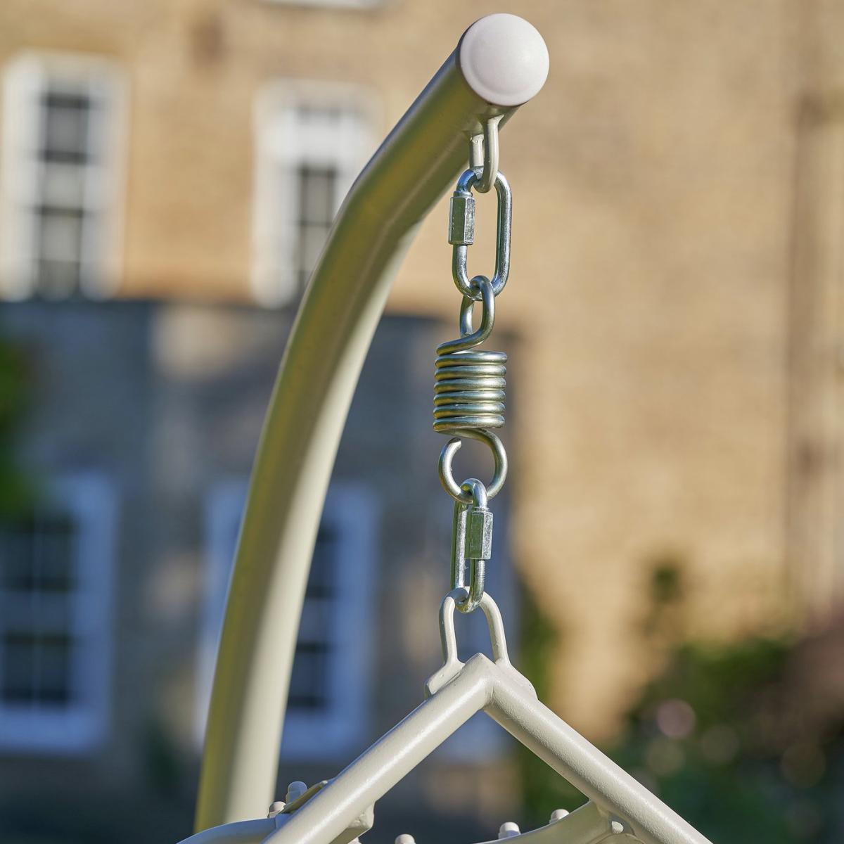 The Blake Hanging Chair, features a powder-coated aluminium frame in a pebble finish. The rope weave forming the shape of the chair ensures maximum comfort, whilst providing a stylish look. The chair comes with a high back season-proof cushion in a pebble fabric. Made from steel and aluminium. Fabric made from polyester. Removable cushions included. Dimensions: Size H196, W105, D120cm. Weight 27kg. Maximum user weight: 110kg. Package Dimensions: Package 1 dimensions: H19, W117, D116cm. Package 1 weight:31.5kg. General information: Minimal assembly - 1person required. Store cushions inside when not in use. Frame easily dismantles for storage. Cover or store inside in winter months to prolong life of the product. Manufacturer's 3 year guarantee.