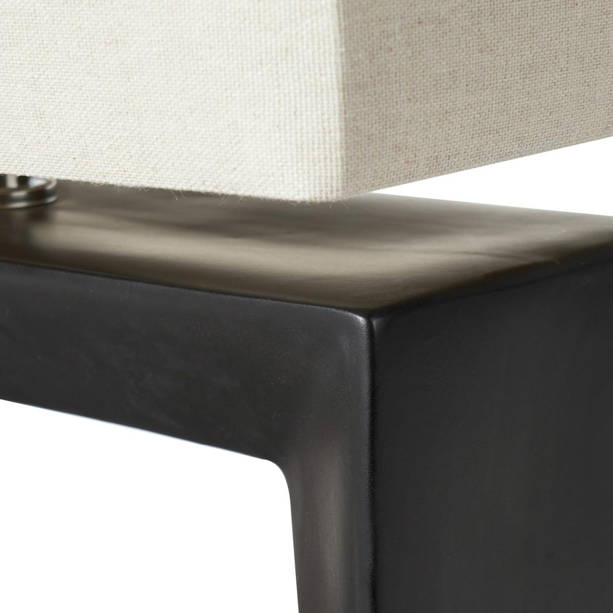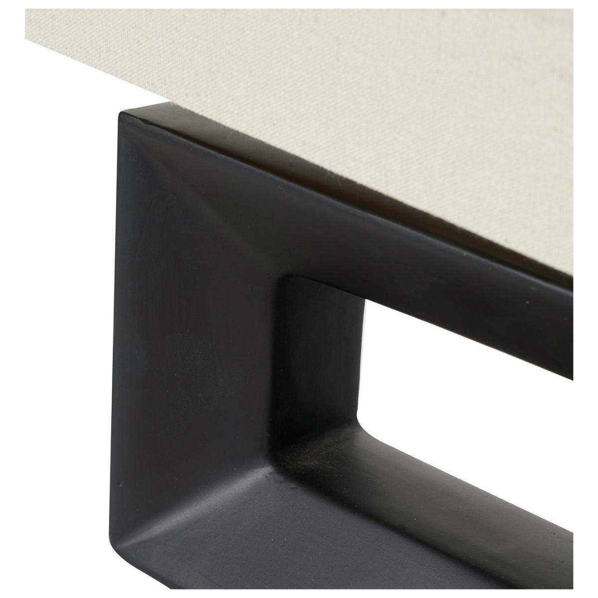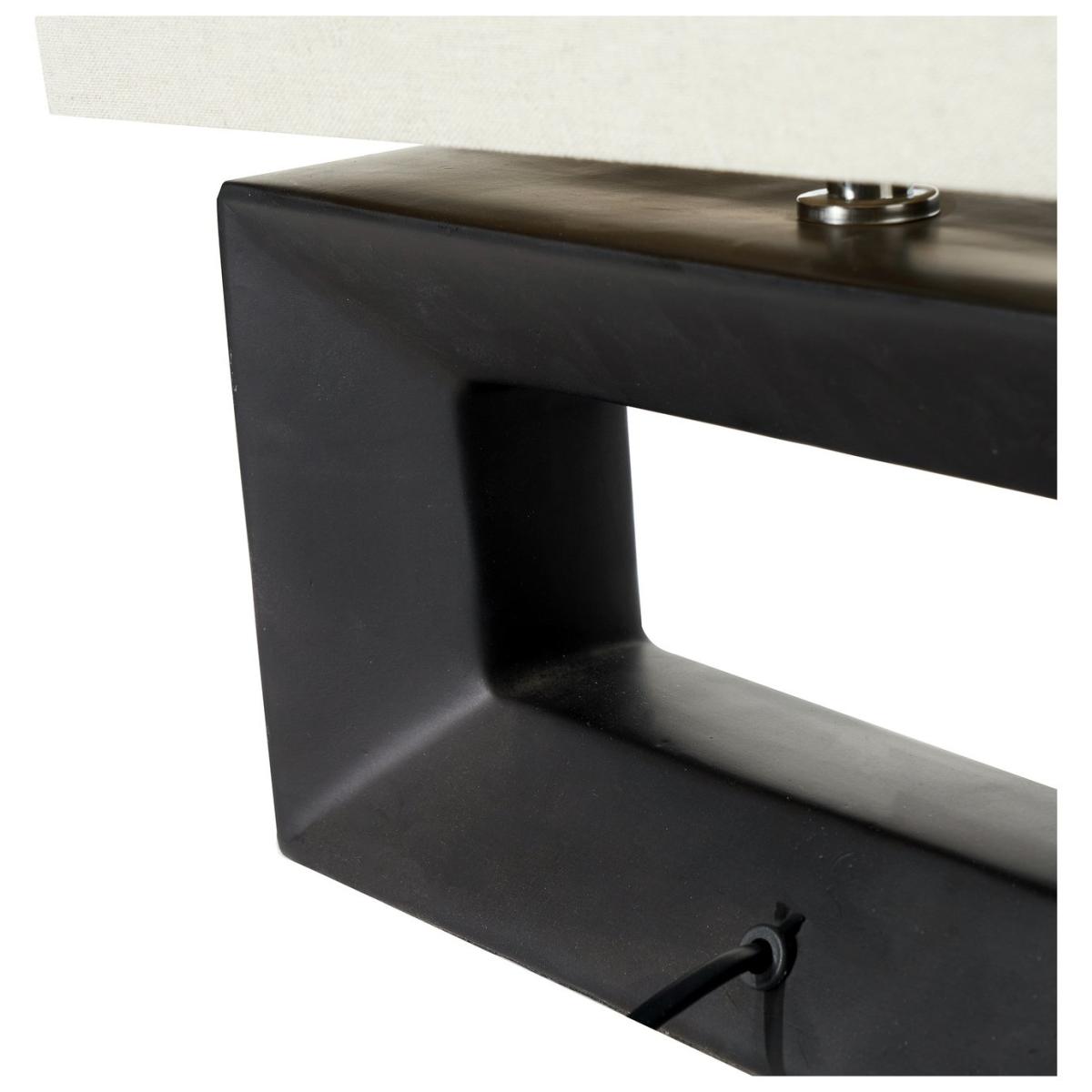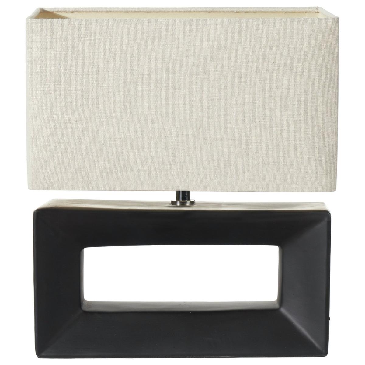 Modern meets retro design. Our quirky Block Black Table Lamp is the perfect feature lamp. The rectangular shape is uber-modern and the contrasting matt black ceramic base and neutral linen shade make this lamp bang on-trend. Dimensions: Overall size H35, W32, D16 cm. Diameter 32cm. Shade size H17, D32cm. Diameter of base 30cm. Cord length 2m. Bulb Information: Bulbs required 1 x candle E14 small edison screw LED bulb(s)(not included). General Information: Shade colour: cream. Base colour: black. Shade material: faux linen. Base material: ceramic. In-line switch. IP rating 20. App needed for use: No. Minimal assembly. Product is mains powered plug in. This lighting product is a class 2 fitting. Manufacturer's 1 year guarantee.