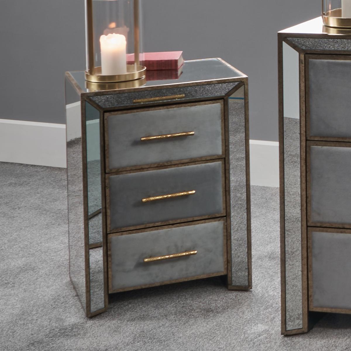 Pacific Brindisi 3 Drawer Bedside Table, Grey Velvet Grey