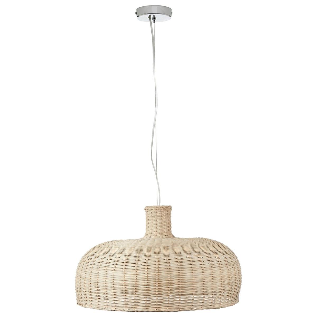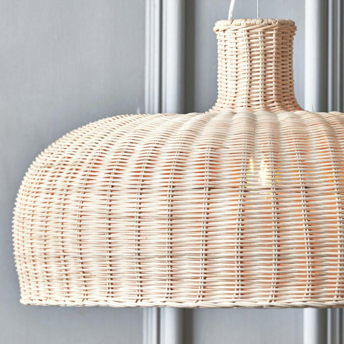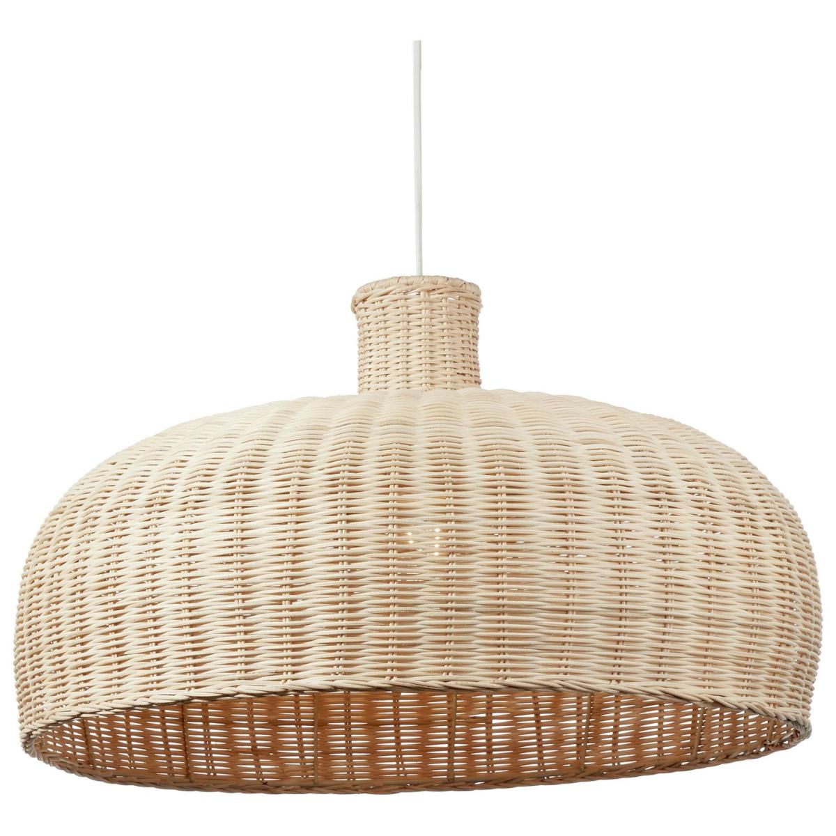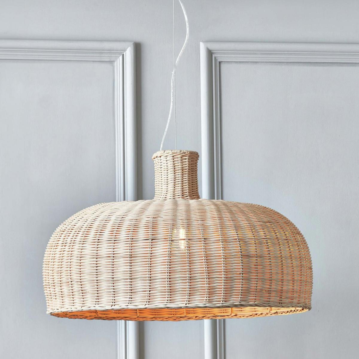 This non elec dome-shaped pendant light is handwoven from beautiful natural rattan. The delicate weave design allows the light to shine through and create striking patterns on the ceiling. Finished in a beautiful natural weave, this pendant light is the perfect addition to a scandi interioir. Dimensions: Size H31, W52, Diameter 52cm. Adjustable drop. 30 - 100cm drop. Bulb Information: Can be used with a dimmer switch. Dimmable LED bulb. General Information: Material: Rattan. IP rating 20. Not suitable for bathroom use. Weight: 1kg. Manufacturer's 1 year guarantee.