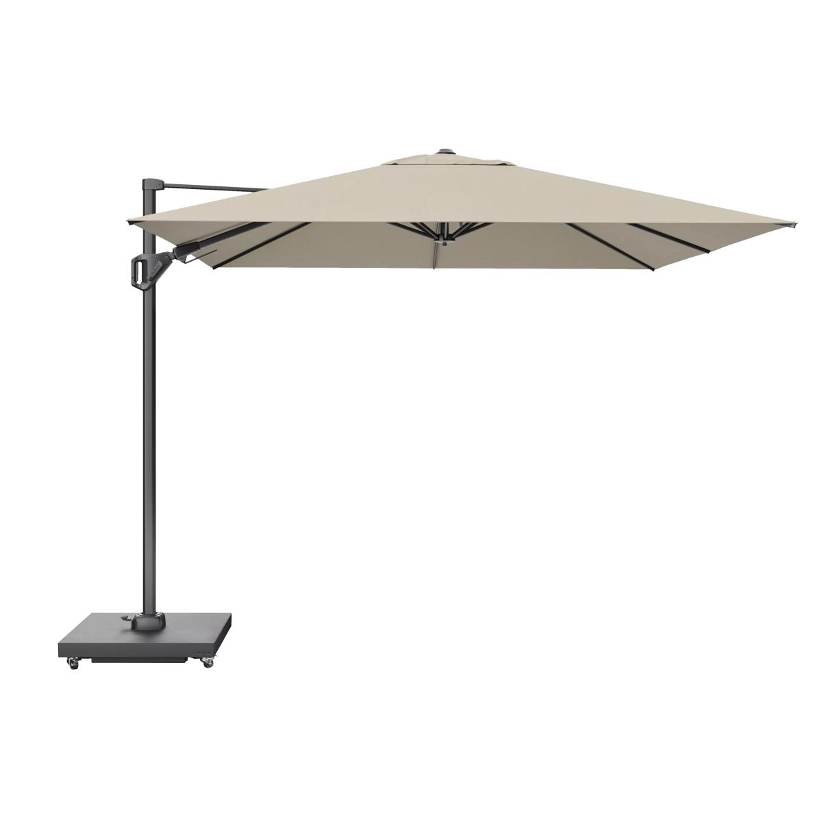 This Challenger T2 is a free-arm square parasol offering a stylish and deluxe design, engineered with comfort in mind. Double tilt system T2 parasols offer a double tilt system, ensuring the full movement of the parasol without any movement of the base. You can tilt the parasol from side to side or backward and forward, and it can be held easily at any angle by simply locking it into place with the handy lever. The parasol can be moved around 360 degrees in a smooth and easy action, guaranteeing shade wherever you desire. Durable design The mechanism of the parasol is durable stainless steel and encased in a strong powder-coated aluminium housing, meaning no rust or corrosion. The durability and strength of the parasol are further enhanced with its robust powder-coated aluminium pole and the tension springs that keep the fabric taught, secure, and looking its best. Premium-class fabric The parasol is made from luxurious premium-class, water-repellent and dirt-resistant fabric, protecting you from the elements and the sun's UV rays. The fabric has been solution-dyed, giving it the advantage of keeping its colour for a lot longer than most other parasols on the market. Stable base The 90kg parasol base is made from a beautiful piece of granite with four 360-degree spin wheels for ease of movement. All four wheels have foot brakes. Cover and storage bag Comes with a Parasol Aerocover to protect your free-arm parasol. The cover features a sewn-in rod for easy placement, and it's water-resistant and provides UV protection. A handy cover storage bag is included.