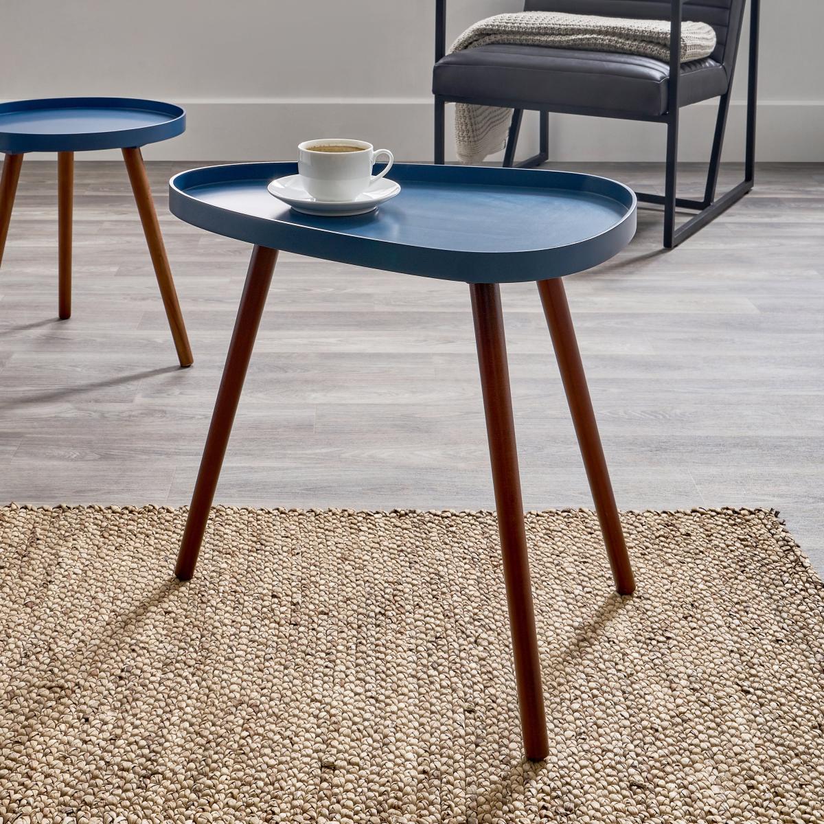 This little side table is a real winner for adding a pop of colour and a touch of mid-century charm to various interiors. I love its versatile blue tone combined with the natural pine wood legs, making it suitable for both contemporary and retro-inspired spaces. It works well in living rooms as a practical surface for a coffee or book, but also as an accent piece next to a reading chair or sofa. To style it effectively, try pairing with other vintage or wooden elements for a cohesive look, or keep it minimal with simple accessories like a small plant or a candle to let its colour and shape stand out. It’s perfect for adding visual interest without overwhelming the room.