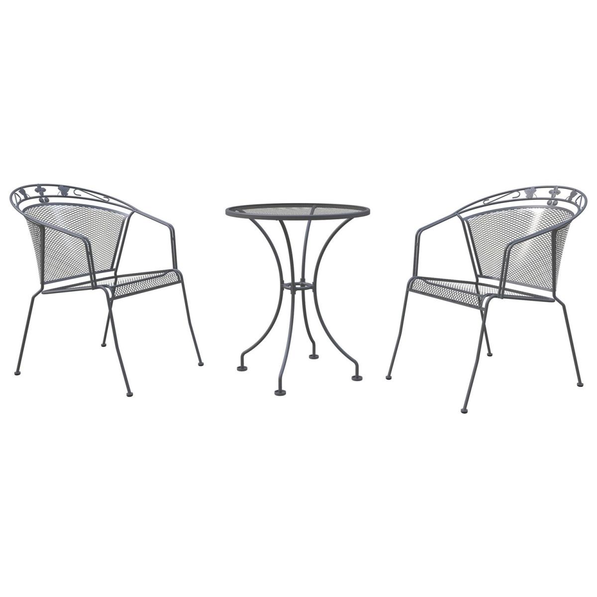 The Elegance 2 Seater Bistro Set will add comfort and style to your outdoor space. This set includes 2 chairs and a bistro table with plenty of space for two to sit back and enjoy a light bite or drinks in the sun. This bistro set brings contemporary elegance with the modern curved back and armrests providing long-lasting comfort, elevated with the delicate ivy detailing. With the stackable feature of the chairs, this set can be effortlessly stored away for the winter. Part of the Elegance collection. Parasol base not included. Parasol not included. General features: Set seats 2 people. Set made from steel. Cover or store inside in winter months to prolong life of the products. Total weight 19kg. Garden table features: Steel table top. Table size: H73, W60, L60cm. Table diameter: 60cm. Chair features: Chair seat and back made from steel. Size H92, W57, D77cm. Seat height 41cm. Stackable chairs. 120kg maximum user weight per chair. Packaging information: Package 1 size H11.5, W65, D64cm. Package 1 weight 9.56kg. Package 2 size H64, W83, D106cm. Package 2 weight 16.5kg. General Information: Minimal assembly - 1 person required. Manufacturer's 2 year guarantee.