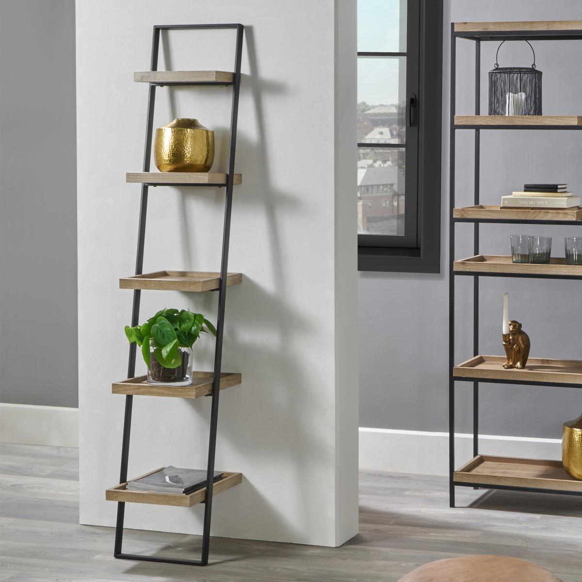 I’m a fan of this slim ladder shelf because it adds storage without overwhelming a room - its natural timber shelves and black frame suit everything from Scandinavian‐inspired spaces to industrial lofts. The open design keeps a corner light and airy, making it ideal for hallways, home offices or alongside a sofa in a living area. For styling, alternate decorative items with practical objects: stack a couple of books beneath a small plant, display a framed photo next to a candle, and leave one shelf clear to stop it looking cluttered. Use baskets on the lower rungs to hide everyday bits and bobs while keeping higher shelves for your best pieces.