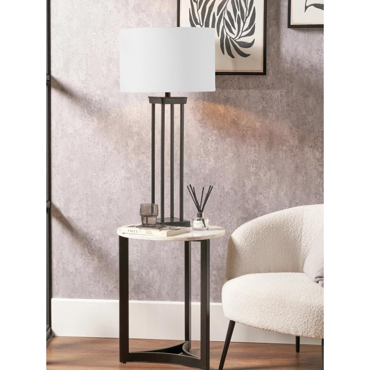 I love the geometric elegance of this table lamp; its sleek brass finish combined with the bold black shade makes it a versatile piece that can elevate both modern and classic interiors. It works particularly well in living rooms or bedrooms where you want a statement piece without overwhelming the space. For styling, consider pairing it with textured cushions or a glass vase for contrast. Practical tips include placing it on a side table or console to create a cosy, well-lit corner, and using a warm bulb to complement its warm metallic tones for a welcoming glow. Its minimalist design makes it easy to incorporate into a variety of colour schemes and decor styles.