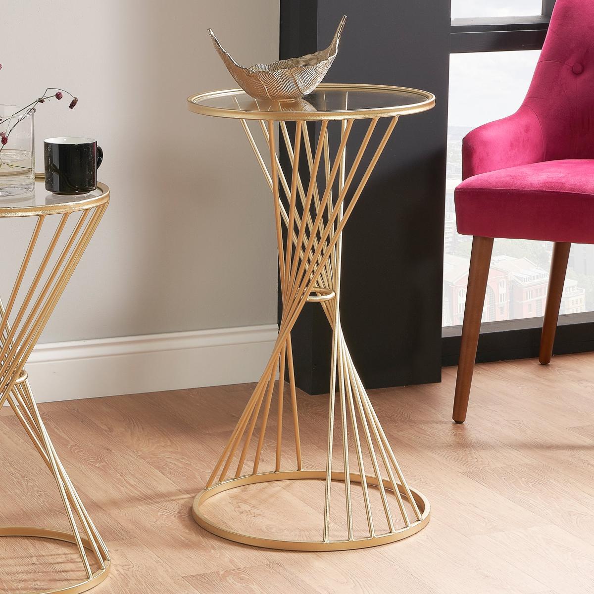A stylish addition to your living room, pop this table next to your favourite spot on the sofa to keep your cuppa close by. The Liberty side table is designed with an Art Deco style, it is characterized by its ornate design that features geometric shapes and bold lines. Made with a gold leaf framework gives the table a luxurious and opulent feel, while the glass top provides it with a sleek and modern look. The sturdy structure ensures its durability and longevity, able to withstand daily use.