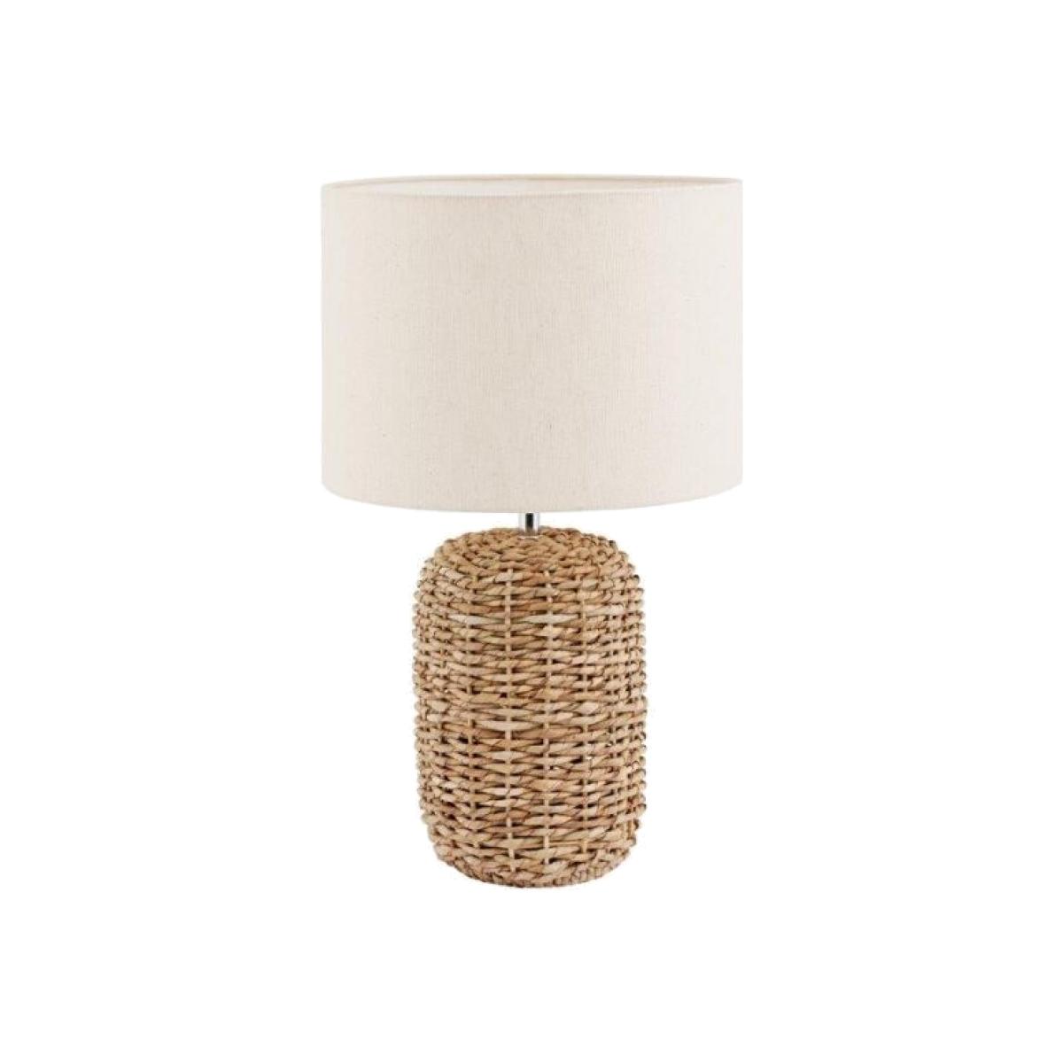 I love this lamp because it combines natural textures with a clean, contemporary silhouette, making it a versatile piece for many interiors. Its woven base adds warmth and tactile interest, which works particularly well in coastal, boho, or Scandinavian spaces. The tall design makes it ideal for placing on side tables or console units, where it can serve as both task and accent lighting. To style it effectively, consider pairing with neutral or earthy-toned furnishings for a relaxed feel, or layering with other woven or wood accessories to enhance a cohesive natural aesthetic. Keep the shade unobstructed to maximise ambient light, and remember that this lamp can seamlessly elevate both casual and more polished interior schemes.