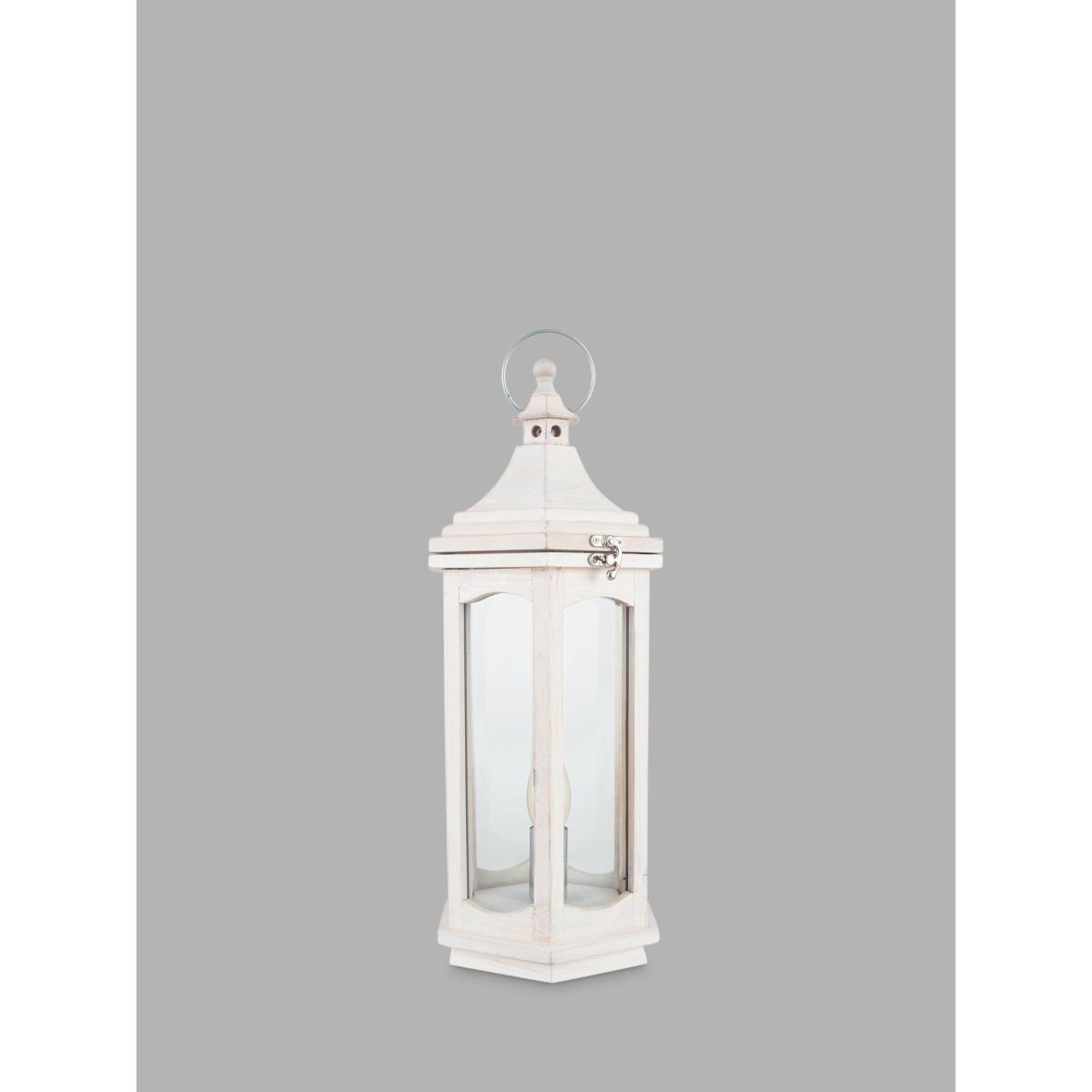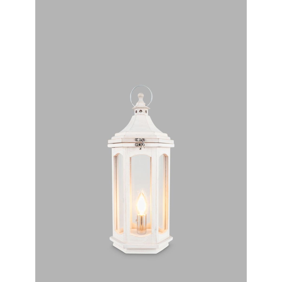 Bring some outdoor styling into your home with this white wash wooden lantern table lamp. The shabby chic effect creates a cosy, homely feel and would look stunning in any interior space.