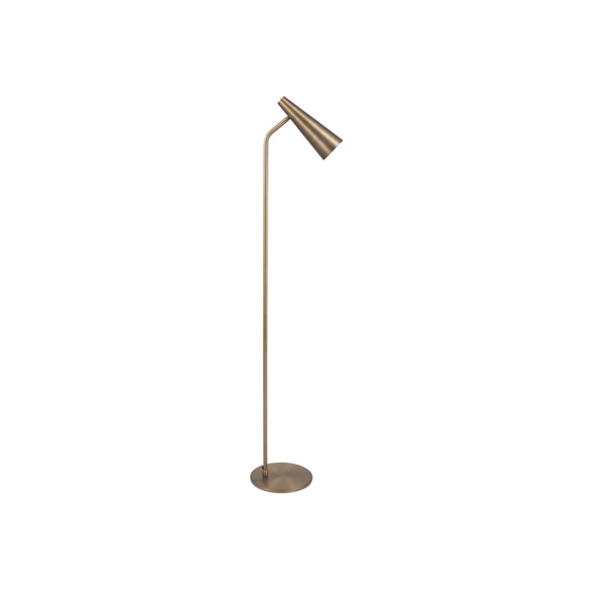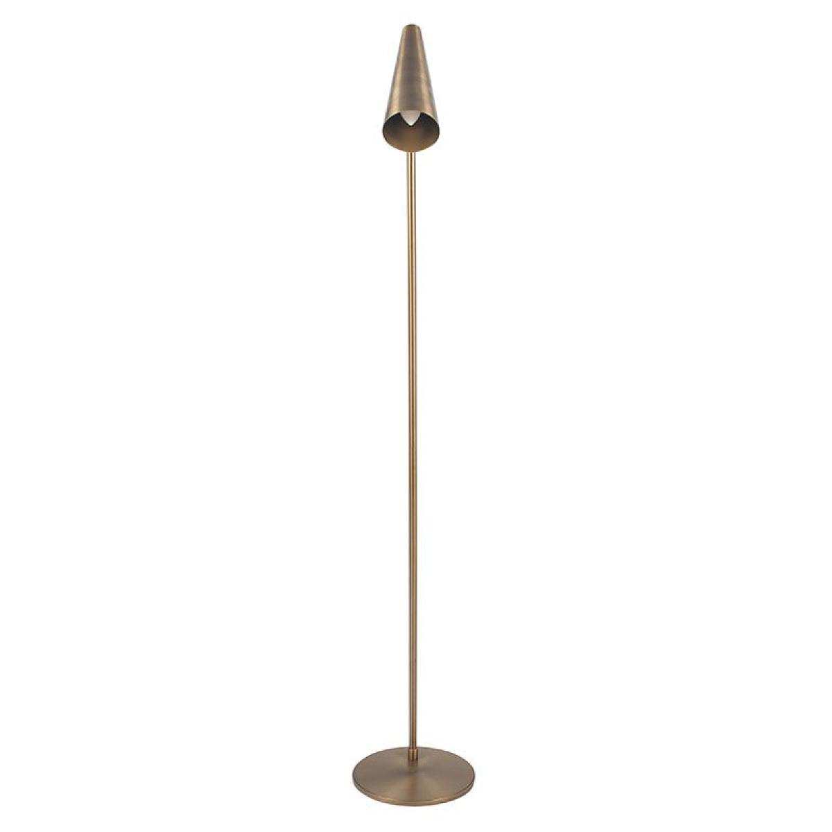 An elegantly simple task floor lamp with a beautiful elongated conical head, slim stem and foot, the finish is a classic antique brass which will make the perfect sophisticated addition to any room.