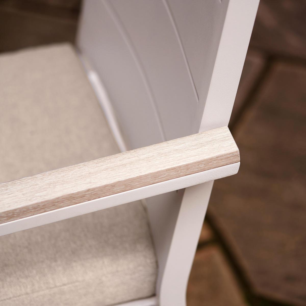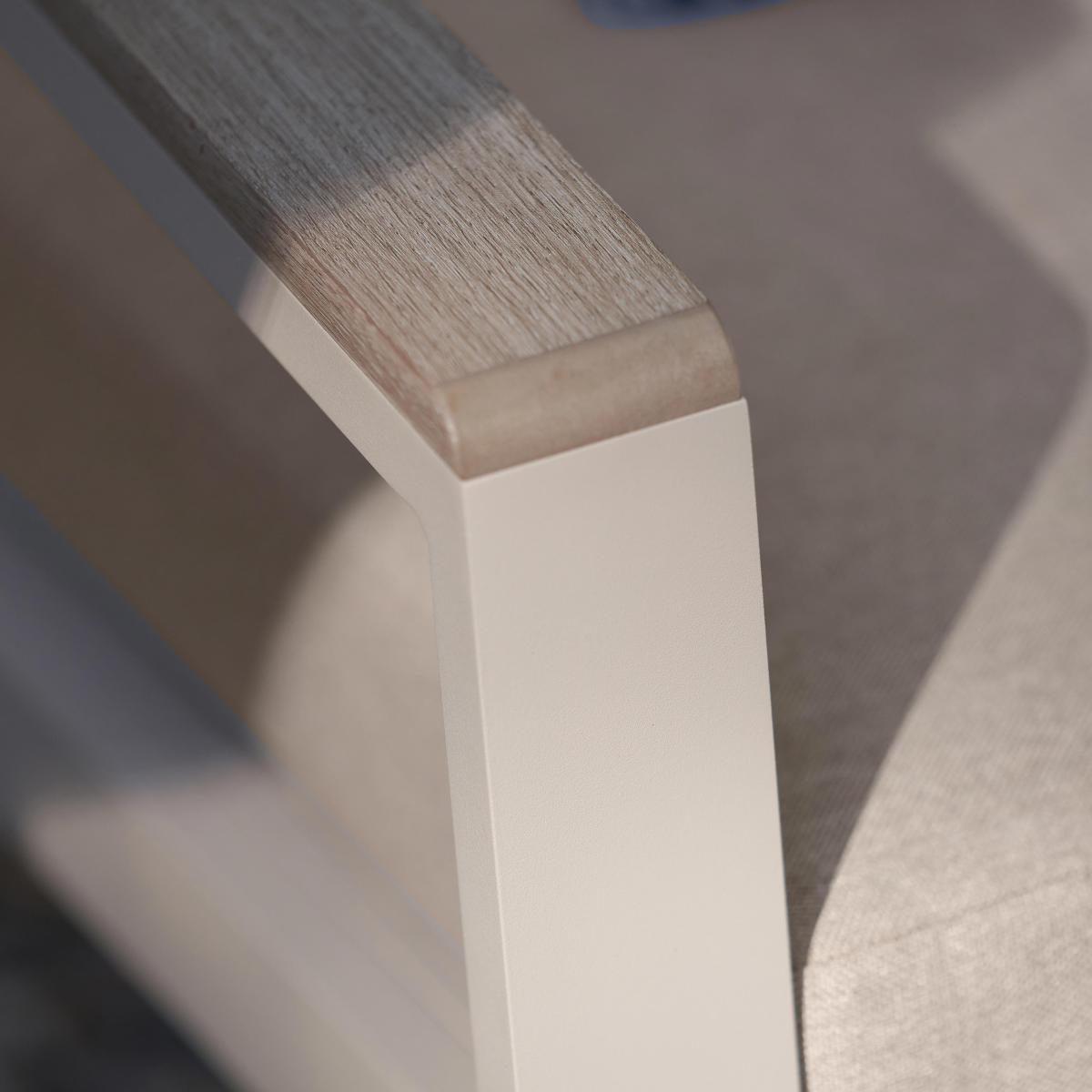 * 1 x table and 4 x chairs * Powder-coated frame * Plush cushions * Season proof Featuring 4 Dining Chairs and 1 Dining Table with a powder-coated aluminium frame, this set is complemented by Ash-coloured polywood table top. The comfortable, season-proof cushions in Putty Olefin fabric are resistant to stains, fading, and quick-drying. Perfect for any outdoor setting, this set comes with a 3-Year Structural Guarantee and should be covered with an Aerocover when not in use.