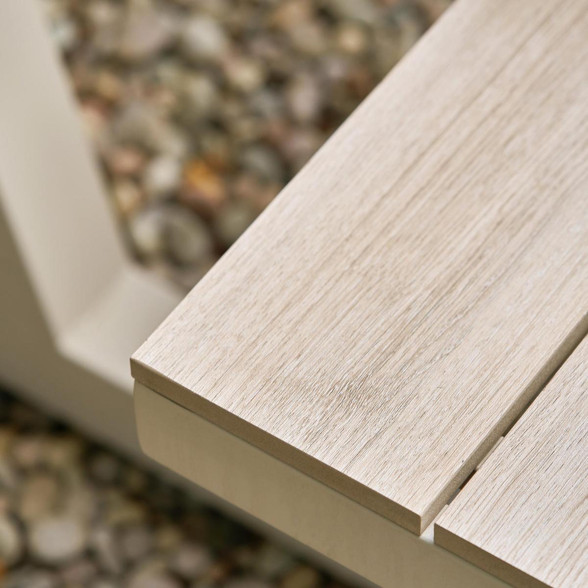 * 2 x benches and 1 x table * Powder-coated frame * Plush cushions * Season proof Create a stylish outdoor dining space with the Aruba Outdoor Bench Set, which includes a bench and dining table. The powder-coated aluminium frame adds elegance and durability, while the Ash-coloured polywood table top offers a modern look. This set is perfect for both functionality and style. Use an Aerocover when not in use to maintain its fresh appearance. The set includes a 3-Year Structural Guarantee for added peace of mind.