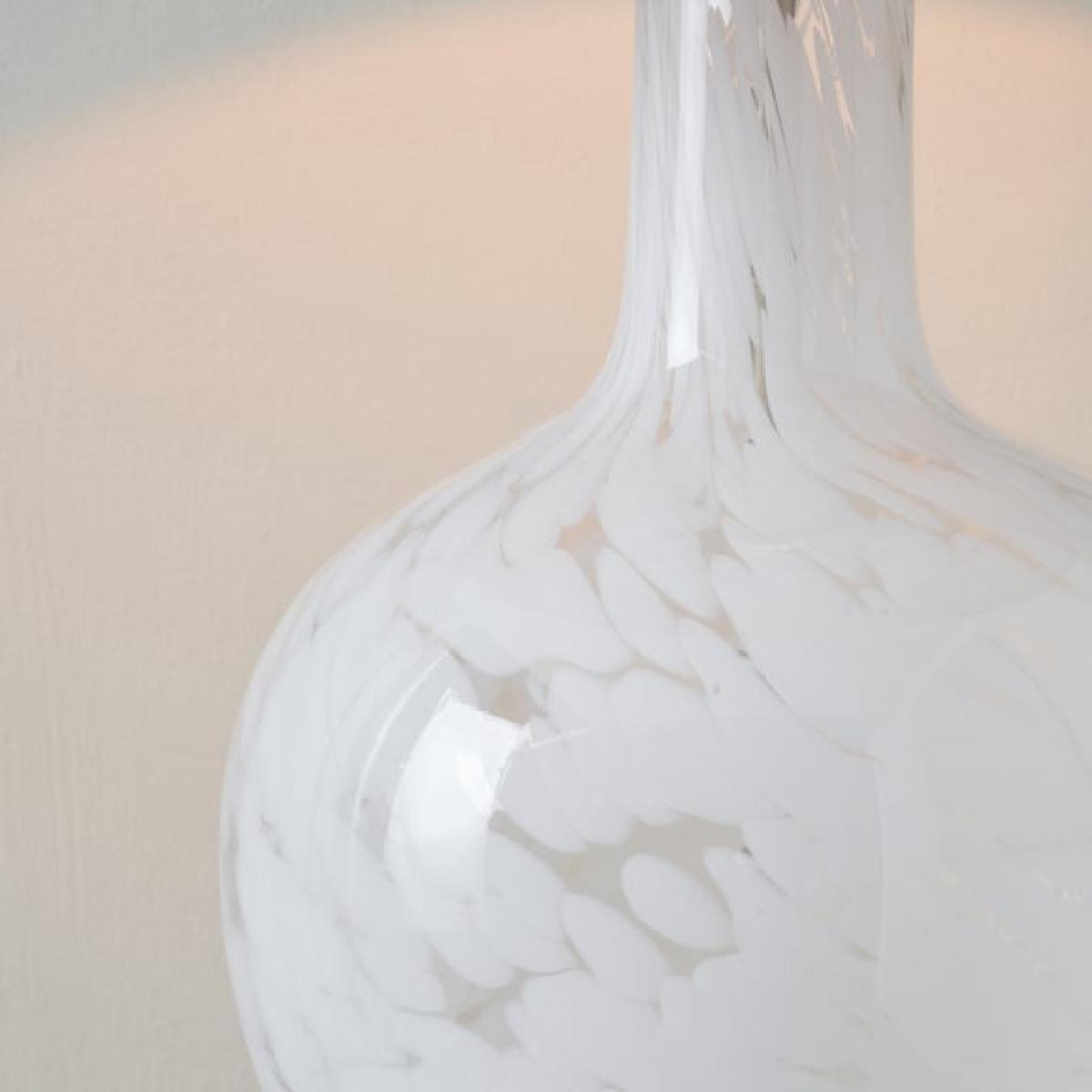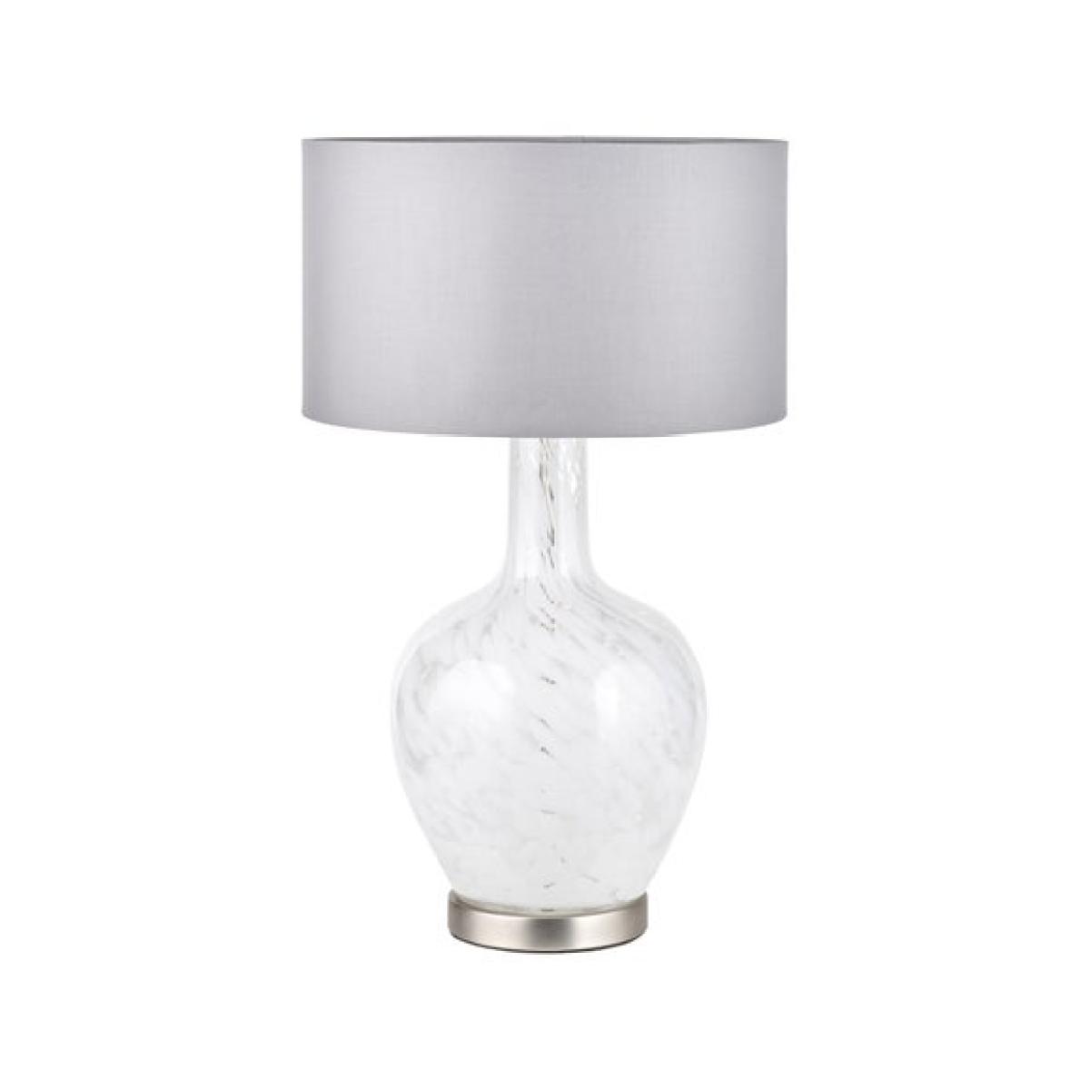 * Stylish, Speckled Design * Convenient In-Line Switch * Requires: Globe Bulb & E27 Cap Type Elegant and refined, the Pacific Lifestyle Aurora Table Lamp showcases a speckled white glass base with silver accents. Paired with a faux cotton shade and in-line switch, it’s a modern classic.