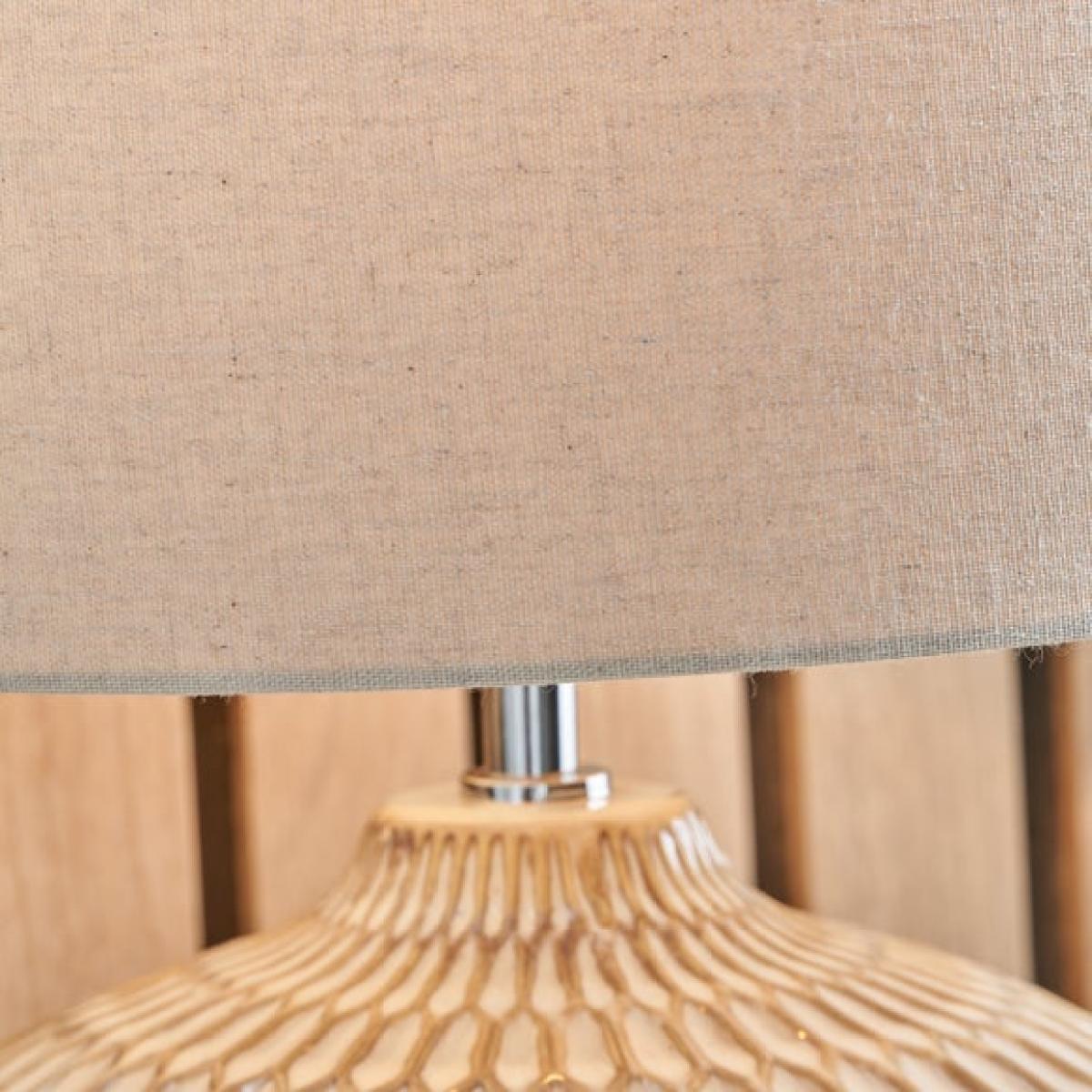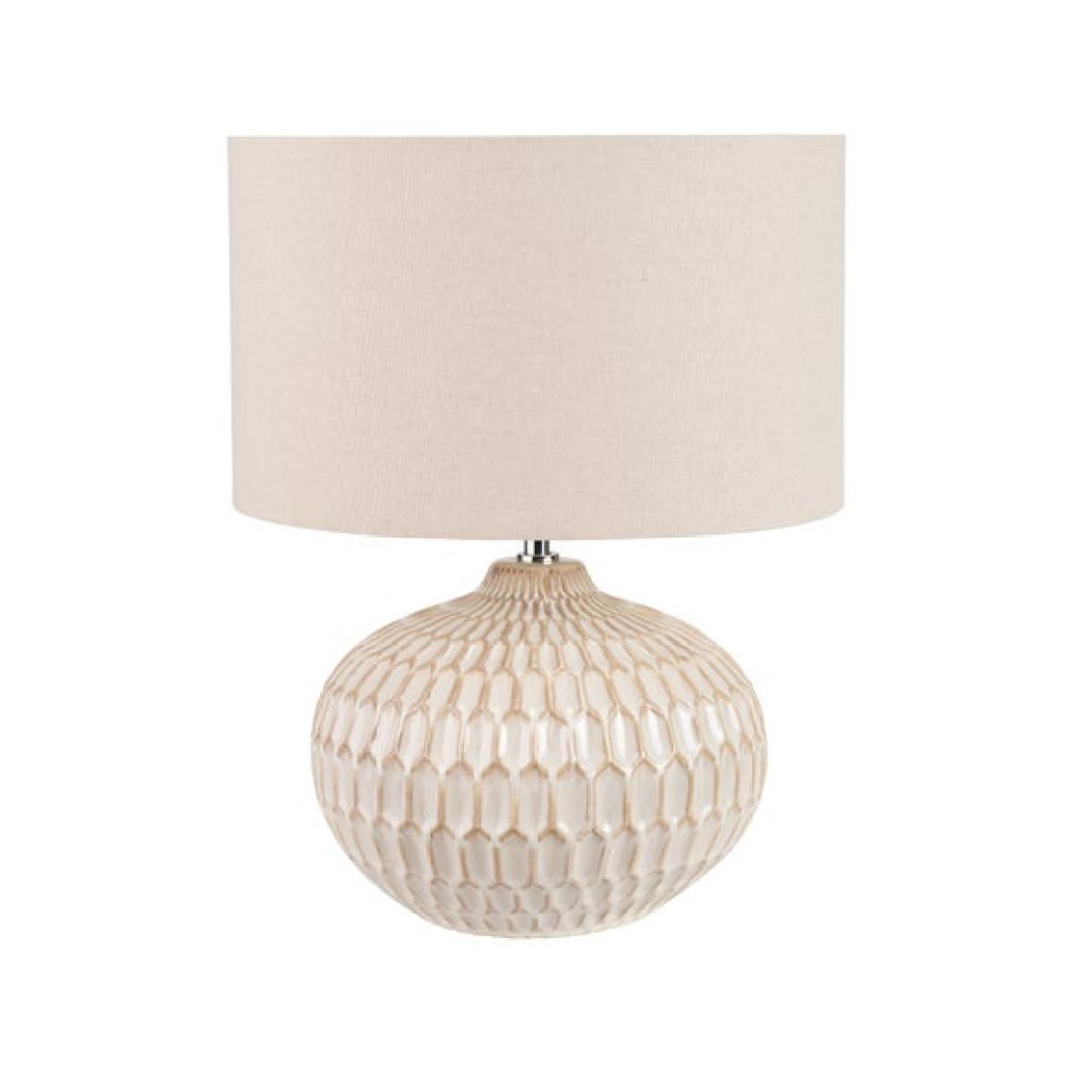 * Textured, Patterned Design * Stylish Glazed Finish * Handy In-Line Switch * Requires: Globe Bulb & E27 Cap Type Textured sophistication defines the Pacific Lifestyle Cassius Table Lamp. Its glazed finish and linen shade create a stylish focal point, complemented by an in-line switch.